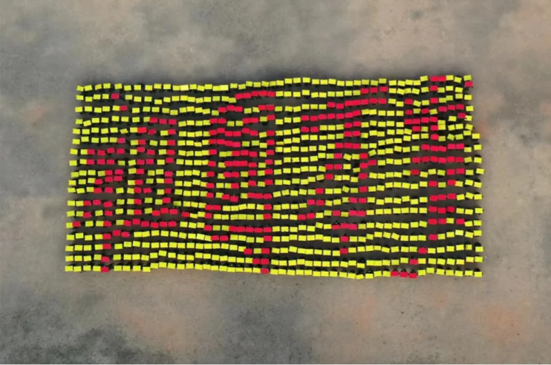 时值中华人民共和国成立72周年,建党100周年,新生们手持红黄双色纸板,随着音乐有条不紊地走位穿梭,向祖国敬献出最美的祝福!