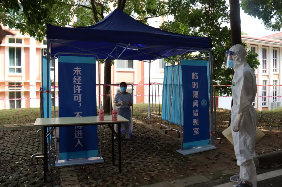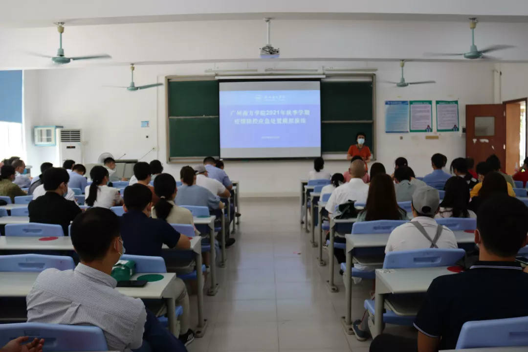 为检查秋季开学前校园疫情防控应急处置各项工作的准备情况,Beat365官网于8月26日下午,按《广州市新型冠状病毒肺炎疫情防控指挥部办公室教育防控专班关于印发广州市2021年秋季开学各级各类学校新冠肺炎疫情应急处置演练方案的通知》文件要求,组织师生员工,按“实战”标准,进行了一场疫情防控应急处置模拟演练。学校防控新型冠状病毒肺炎疫情工作领导小组及应急处置领导小组组长、党委书记李建超、常务副组长唐燕、师生返校疫情防控工作指挥部成员、学校各二级单位行政人员、院系教辅人员、学生辅导员、物业、餐饮服务人员等,共同参与了模拟演练,温泉派出所干警莅临现场工作指导。常务副校长、党委副书记唐燕担任此次演练总指挥。