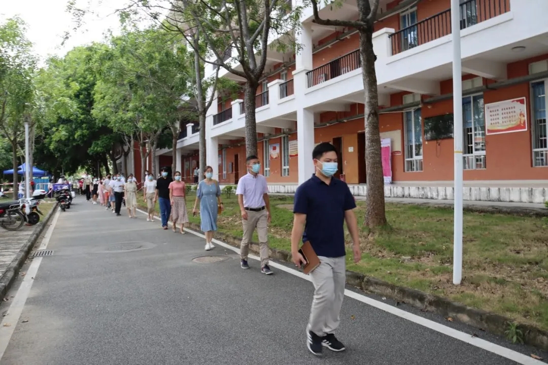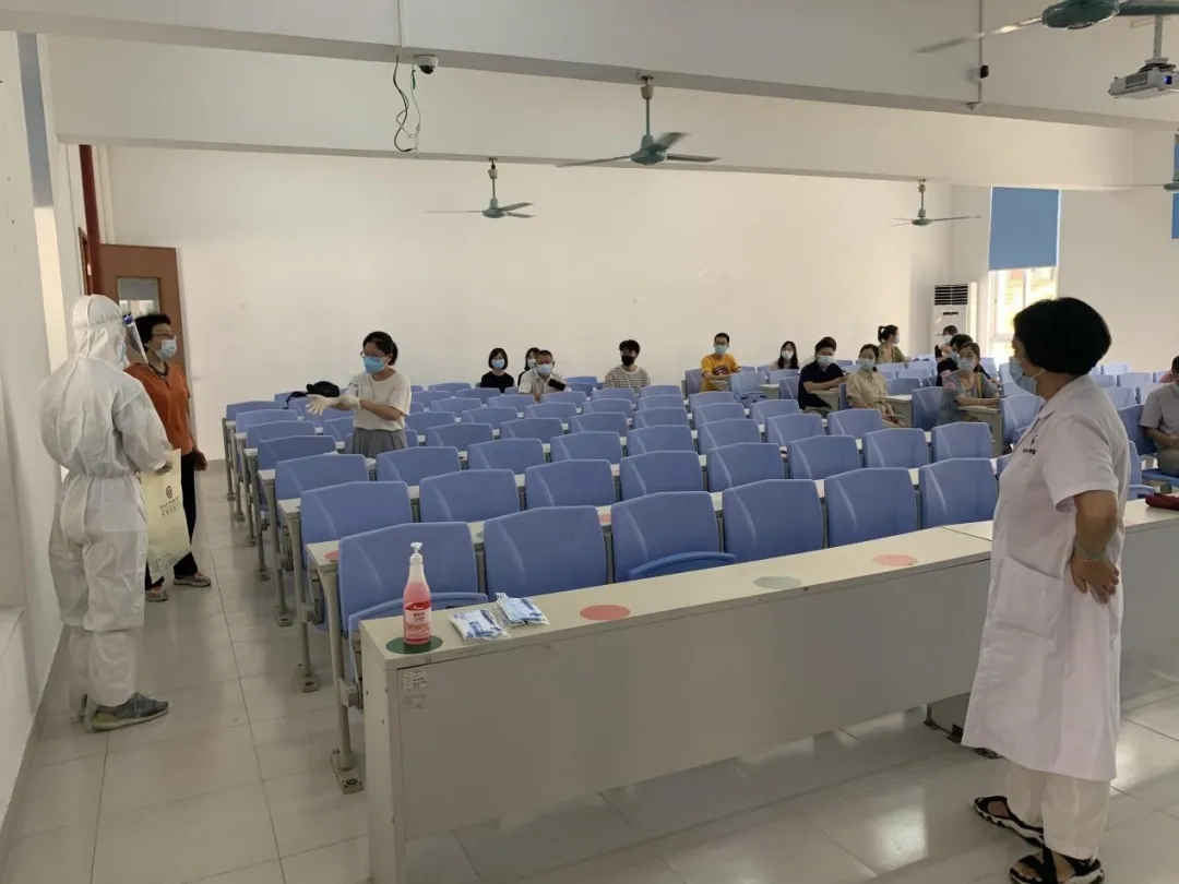 疾控中心到校后,重点演练学校配合疾控中心开展流行病学调查、组织课室的“密接者”核酸采样并引导其上转运车辆前往隔离点,消杀组负责课室消杀。随后学校按区防控专班要求封闭宿舍、必要时封闭校园;保卫处准备好了封闭校园的设施;志愿者开始行动,参与心理疏导和生活需求信息传递,教务处启动线上教学计划;总务处布置全校核酸检测场地,学生处、人事处组织师生分批保持安全距离前往核酸检测;后勤启动餐饮供应并负责与当地政府的沟通,获取必要的支持。