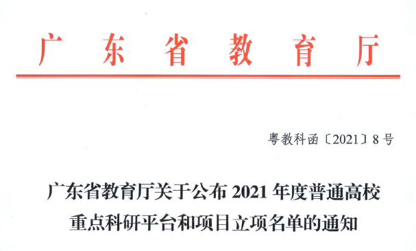 近日,根据《广东省教育厅关于公布2021年度普通高校重点科研平台和项目立项名单的通知》(粤教科函〔2021〕8号),Beat365官网共5项项目获批立项。其中,广东省普通高校工程技术中心1项、广东省普通高校特色新型智库1项、广东省普通高校重点领域专项3项。