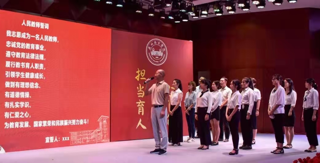 最后,学校举行新入职教师宣誓仪式。商学院何兴强院长带领新入职教职员完成宣誓仪式。