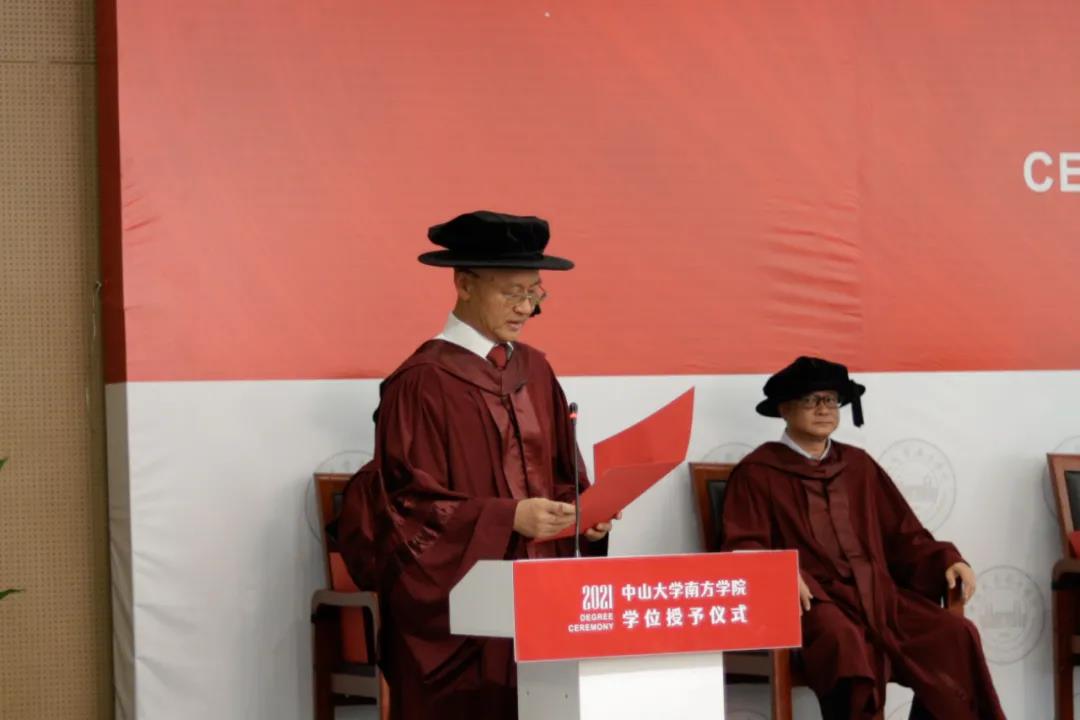 当最后一名毕业生代表全体毕业生接受校长拨穗,学位授予结束,在场的主礼教授和毕业生代表齐唱校歌,在南风薰兮中思绪怅然,在师恩不忘中砥砺前行。随着黄静波副校长宣布“礼成!”,2021届毕业生学位授予仪式圆满落幕。