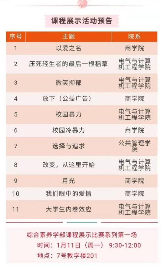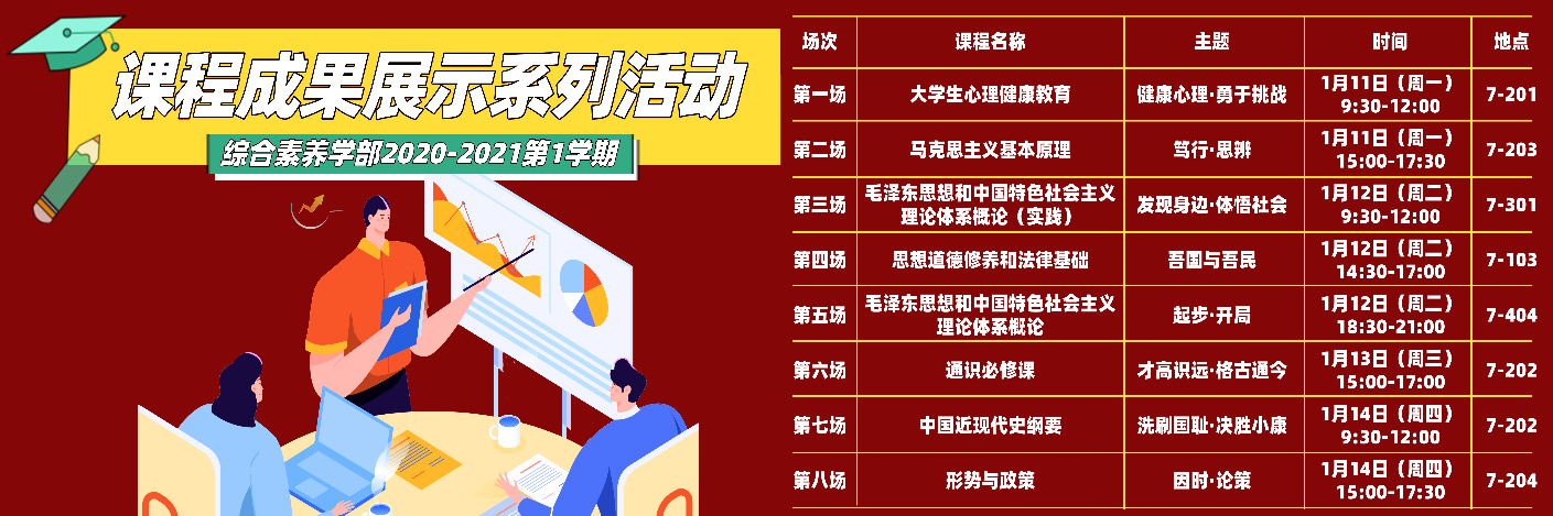 本次竞赛总计八场,涵盖了思政必修课程、通识必修课程以及成长必修课程三大模块八门课程。经过为期两周的全校性海选,八门课程共从全校1000多组学生成果中精挑细选了80多个学习小队参加最终决赛。