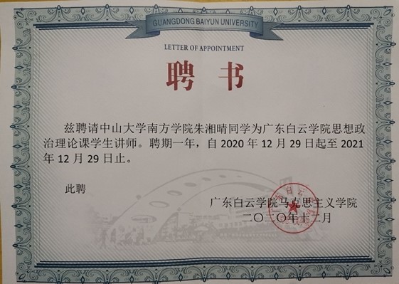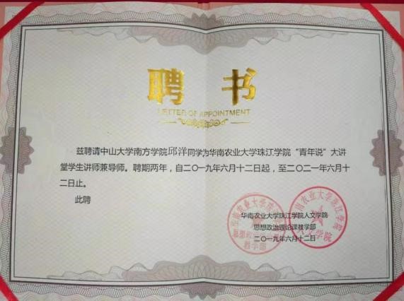 “思想者”学生主讲者先后被广东白云学院、华南农业大学珠江学院聘为学生讲师