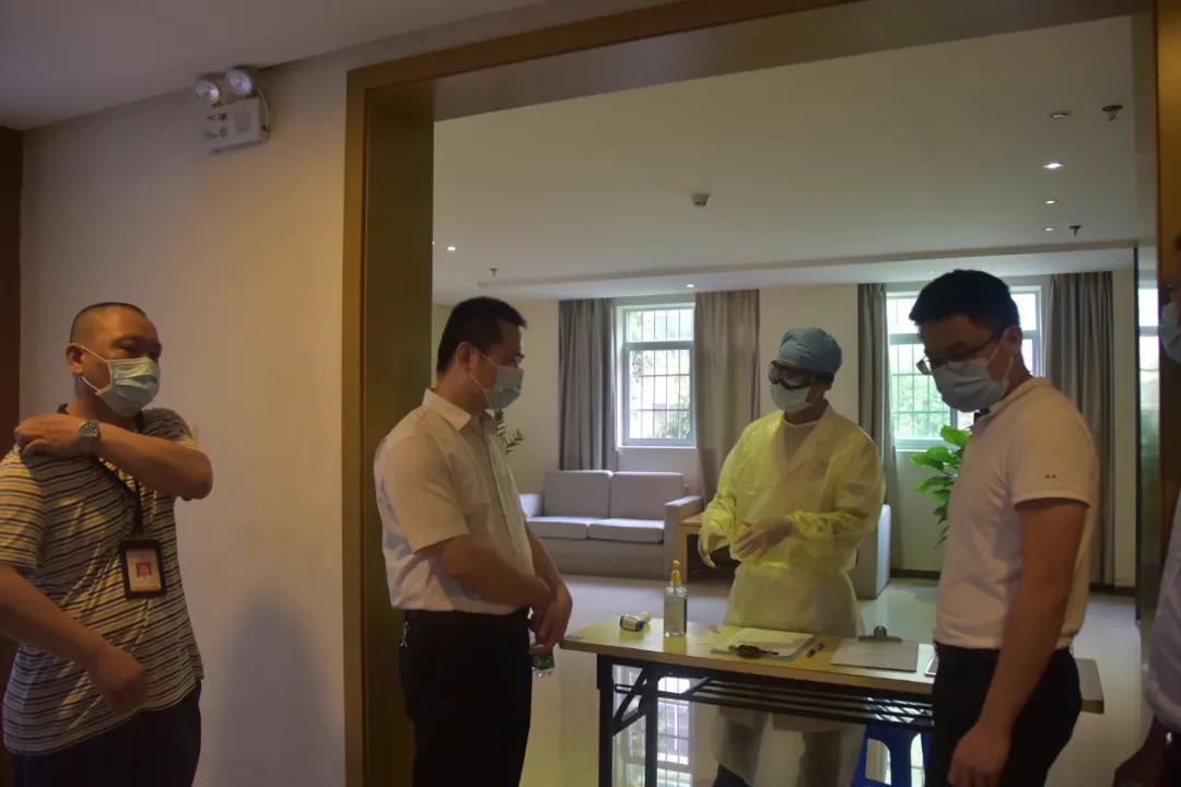 督查验收组一行对照学生返校工作验收清单,实地查看了学校测温核验区、学生宿舍、食堂、独立留观室及观察区、校医室等场所,查阅了学校相关工作台账,从组织管理、校园环境设施管理、医疗物资保障、后勤人员管理、疫情防控教育培训、应急处置准备等方面进行逐一检查和验收。