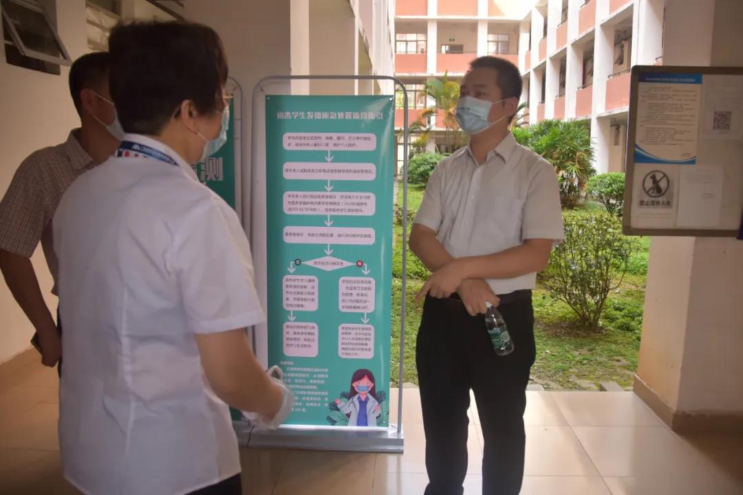 督查验收组详细询问学生分期分批返校安排,对校医室预检分诊处、测温区、独立观察区等设置情况以及保障措施等情况仔细摸排检查;详细了解了食堂分时错峰用餐和就餐流程,对食堂准备情况逐一进行检查,询问食堂工作人员管理和疫情防控各项措施的落实情况;了解学生宿舍空调、饮水机的清洁消毒情况;询问学生疫情防控宣传教育和学生返校后学校的封闭管理情况以及学校防控物资储备调配情况;对发热处置流程设置、医护人员配备等一一摸排了解。