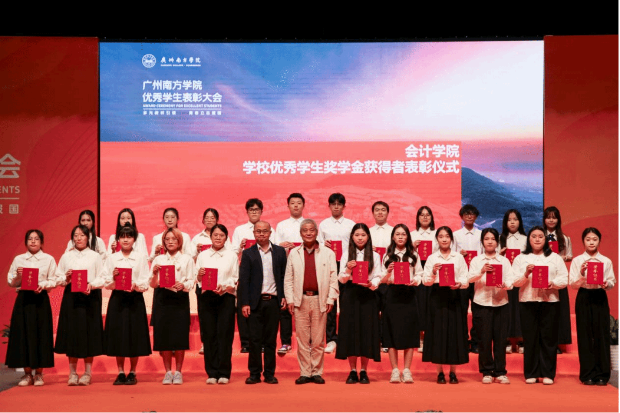会计学院卫建国院长、陈宇桂老师为该院优秀学生奖学金获奖代表颁奖