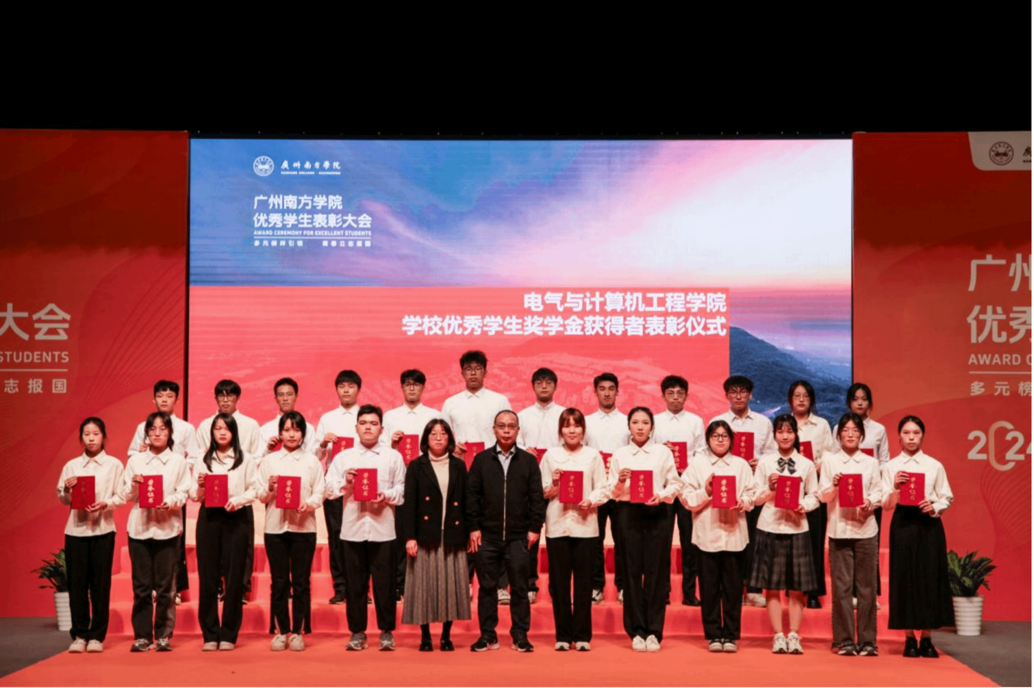 电气与计算机工程学院苑俊英副院长、陈深进副院长为该院优秀学生奖学金获奖代表颁奖