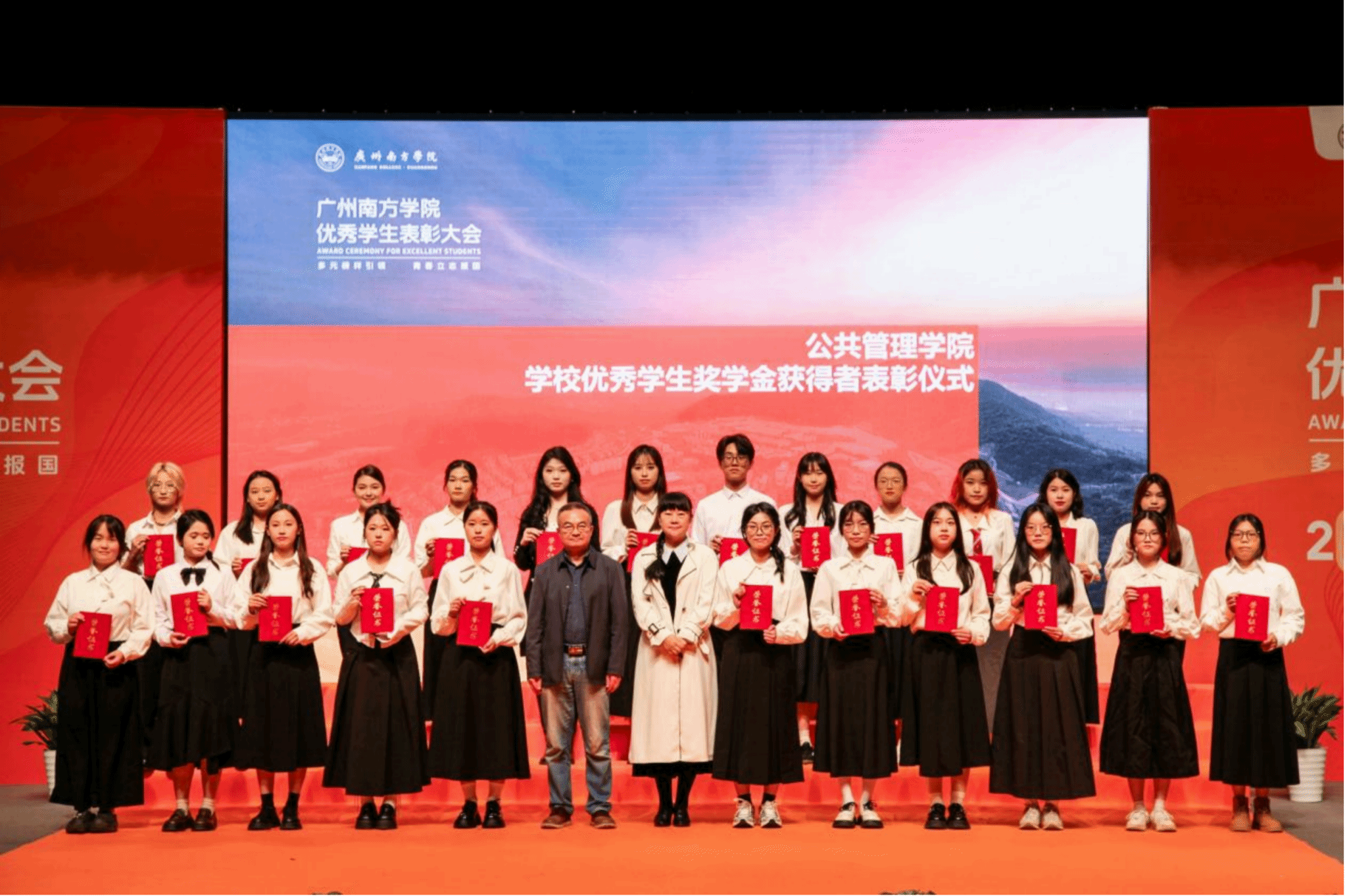 公共管理学院陈天祥院长、史娜副院长为该院优秀学生奖学金获奖代表颁奖