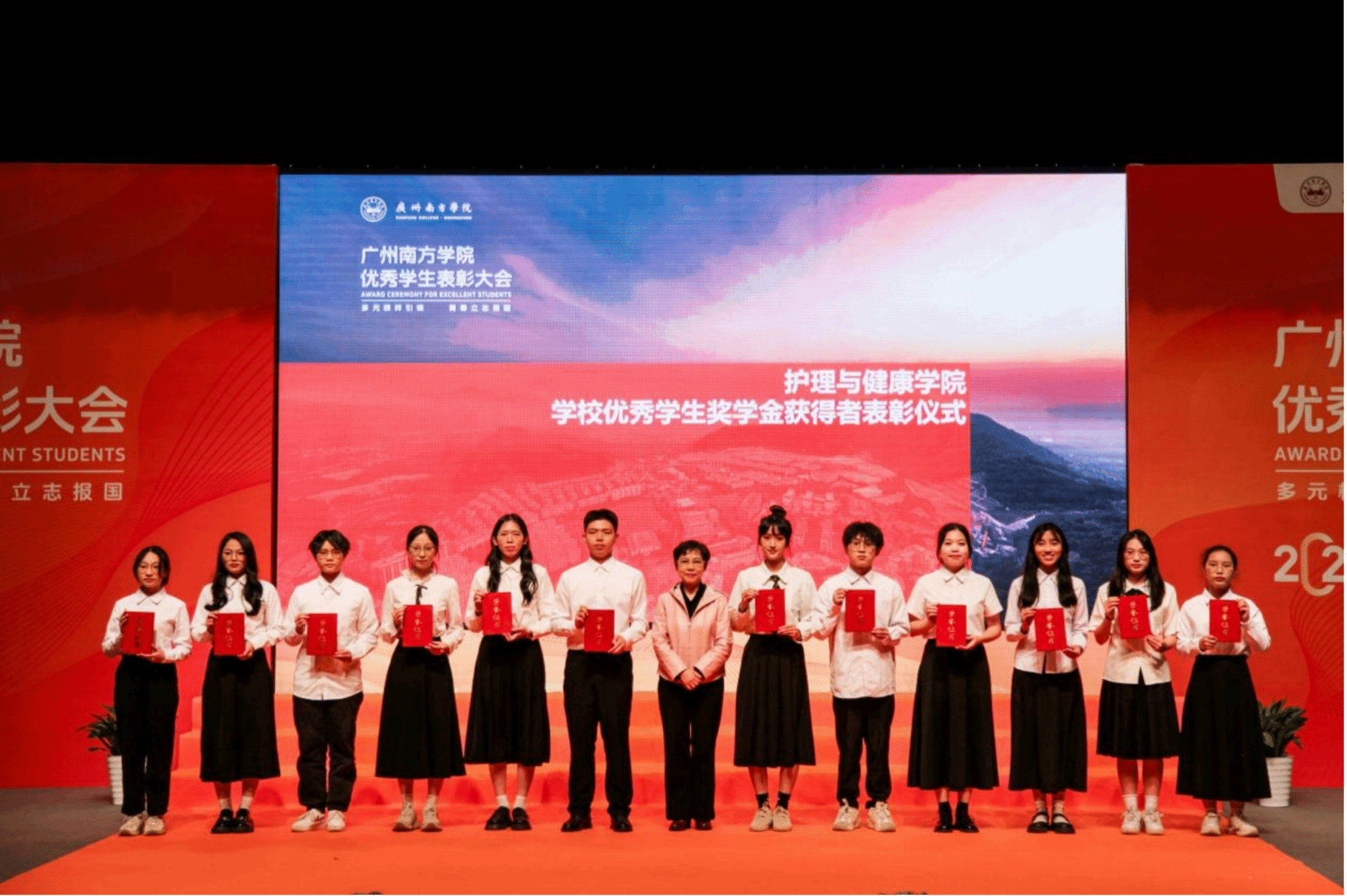 护理与健康学院方海云院长为该院优秀学生奖学金获奖代表颁奖