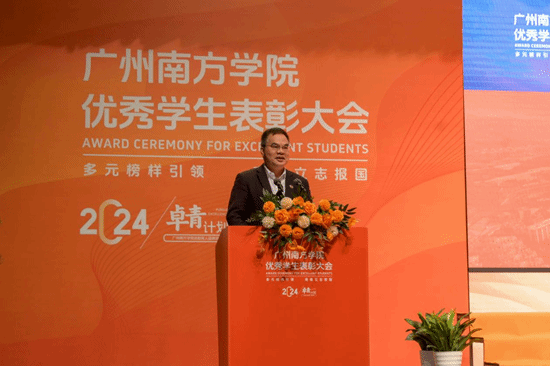 学校党委书记李建超在大会上宣读《Beat365中文官方网站关于表彰2023~2024学年先进集体及优秀学生的决定》。李建超书记表示,学校坚持党的教育方针,紧紧围绕“立德树人”根本任务,不断深化“三全育人”综合改革,育人质量稳步提升,涌现出一批先进集体和优秀学生。为表彰先进、选树典型,评选王泽燕等36名同学获得国家奖学金,李佳颖等723名同学获得国家励志奖学金;评定林钰淳等20名同学获学校“励志榜样”称号,熊康等13名同学获得学校励志奖学金,蔡婉仪等2902名同学获得学校优秀学生奖学金;授予2021级新闻学3班等18个班级“优良学风班”称号。他希望受表彰的学生集体和个人再接再厉,不断追求卓越,希望全校学生以优秀学生为榜样,脚踏实地,积极进取,广大师生携手奋力书写为中国式现代化挺膺担当的青春篇章。