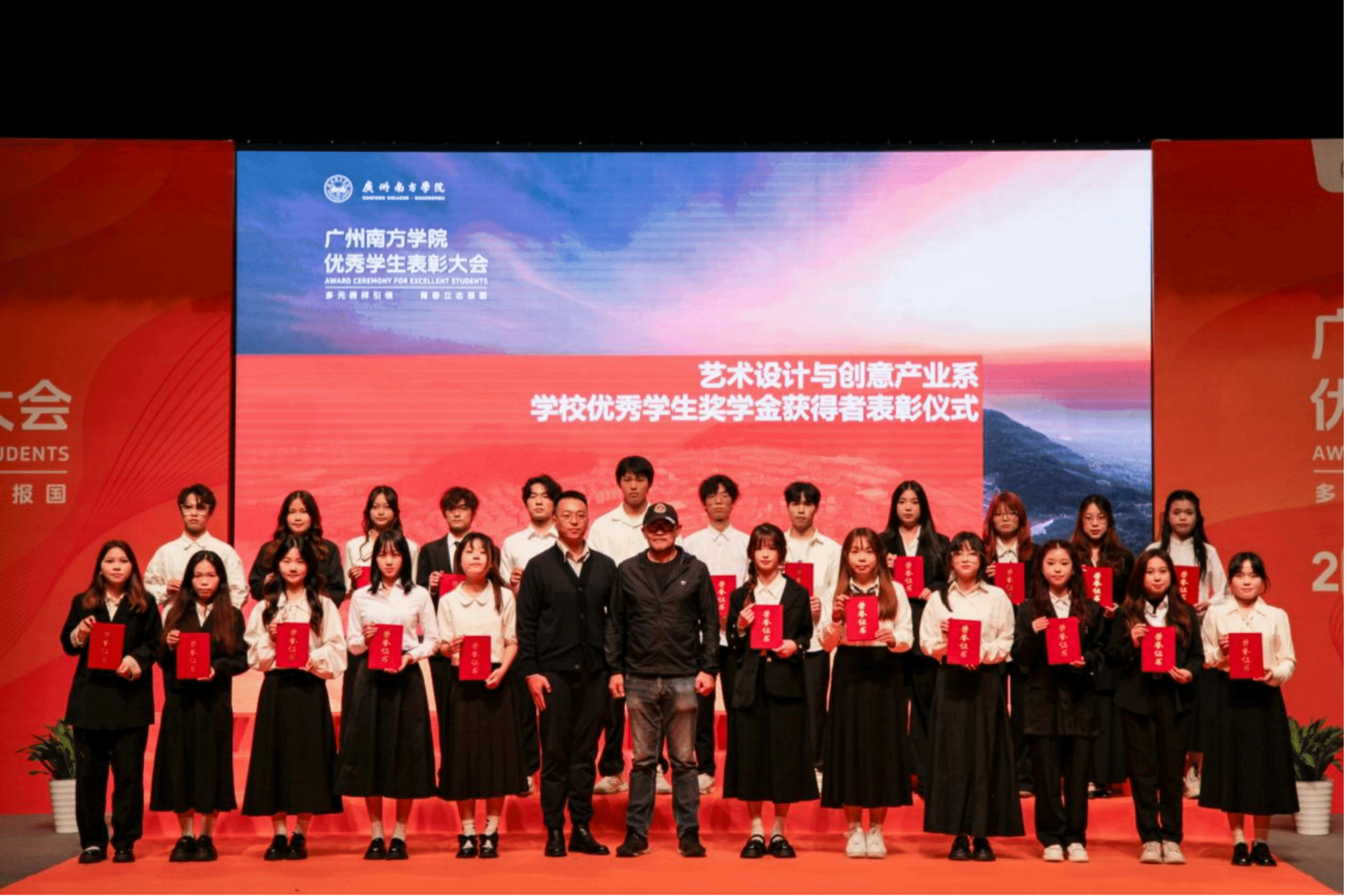 艺术设计与创意产业系冯原主任、常鑫老师为该系优秀学生奖学金获奖代表颁奖