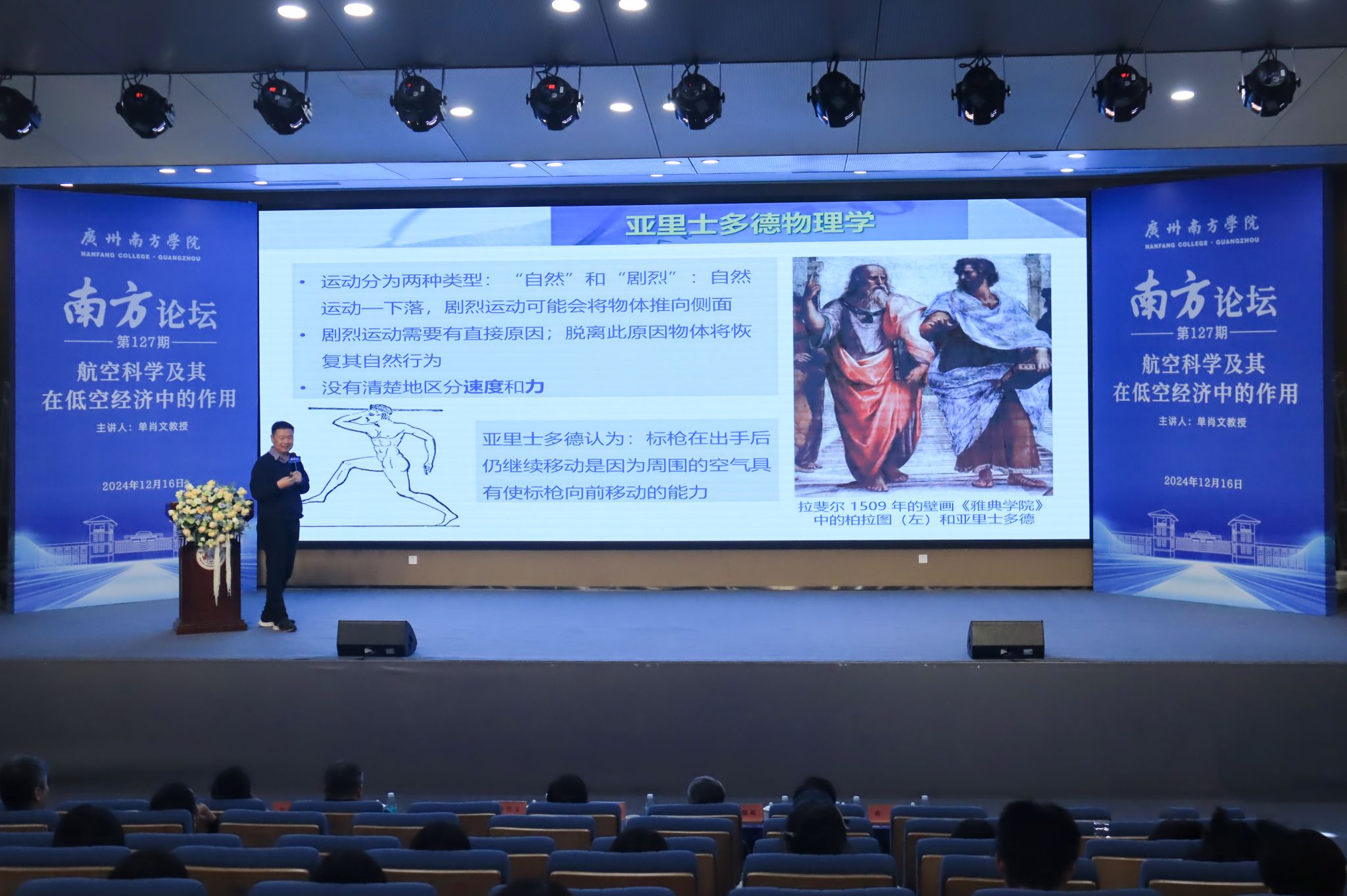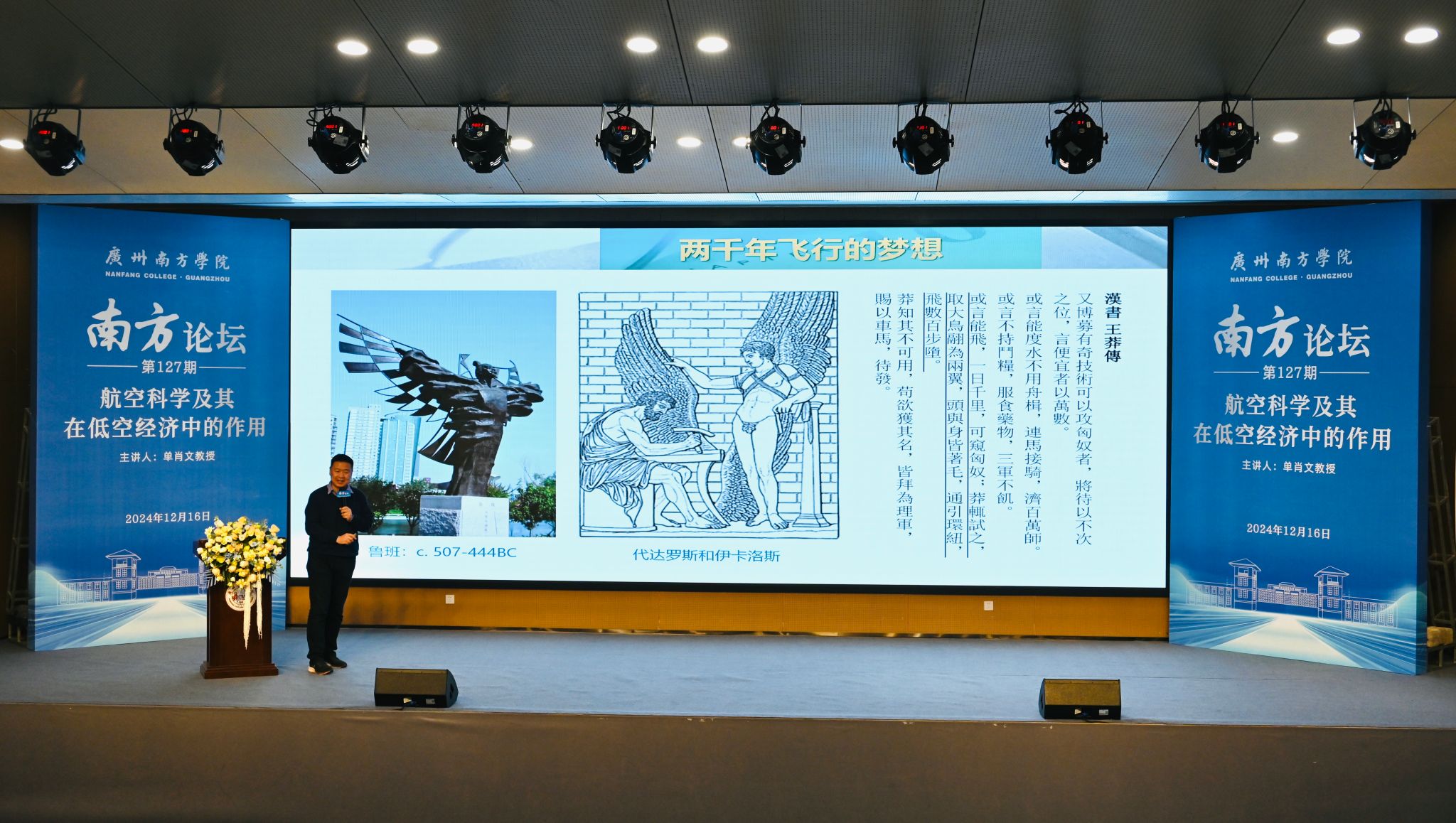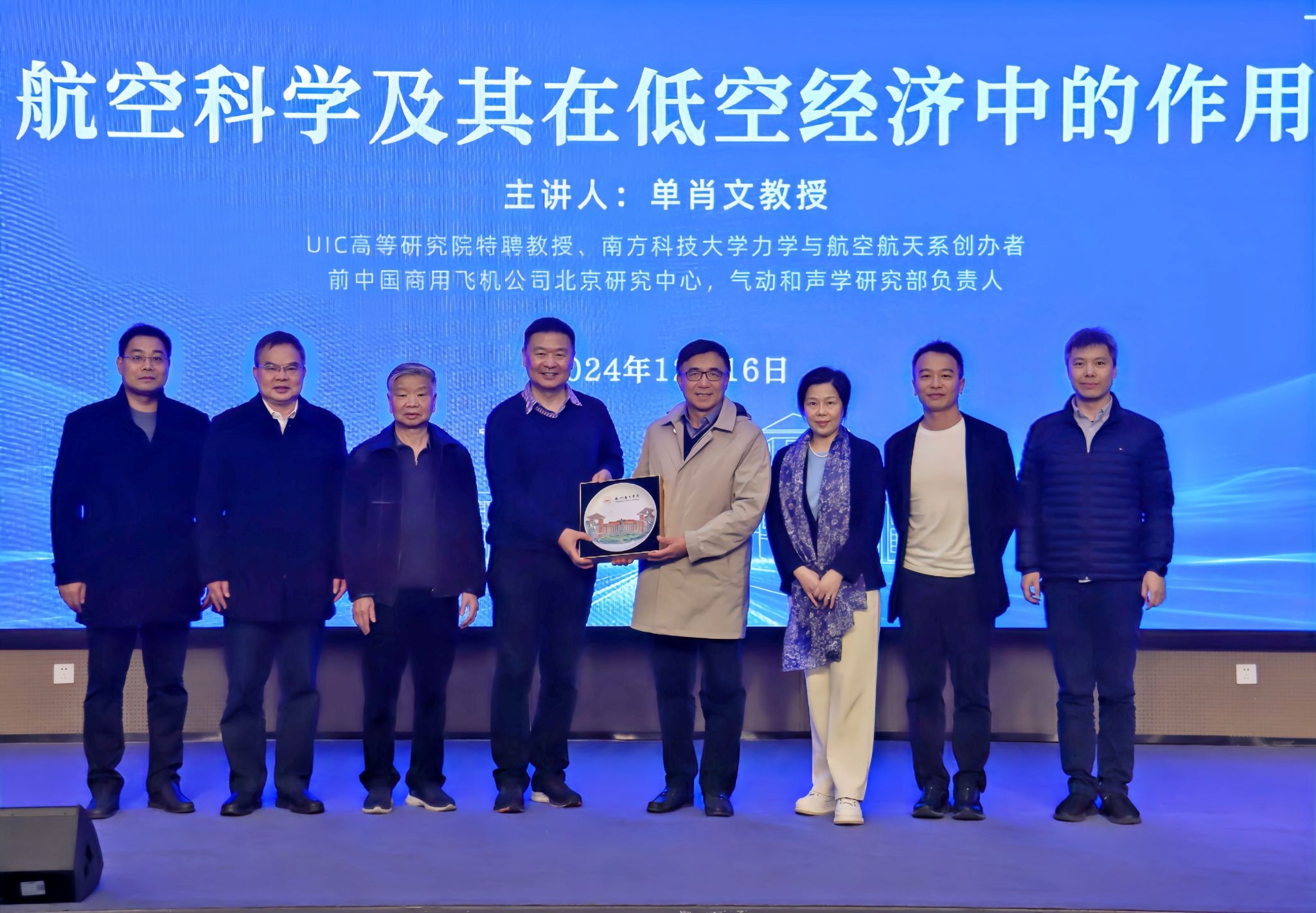 12月16日下午,Beat365中文官方网站特邀北京师范大学-香港浸会大学联合国际学院(以下简称“UIC”)高等研究院的特聘教授、博士生导师单肖文教授做客“南方论坛”,作题为《航空科学及其在低空经济中的作用》的讲座。Beat365中文官方网站校长汤涛院士、校党委书记李建超等校领导,各教学单位、行政单位主要负责人、教师和学生等300余人参加讲座。讲座由校长汤涛院士主持。