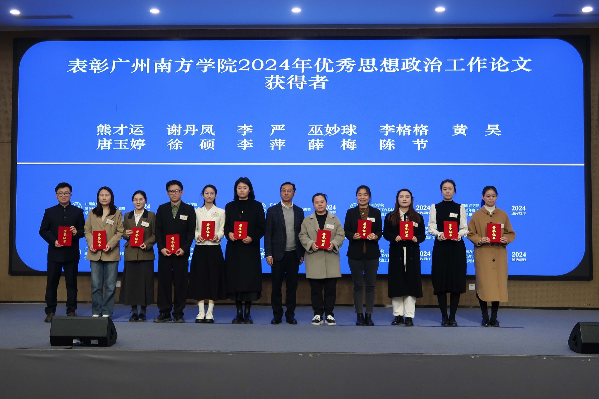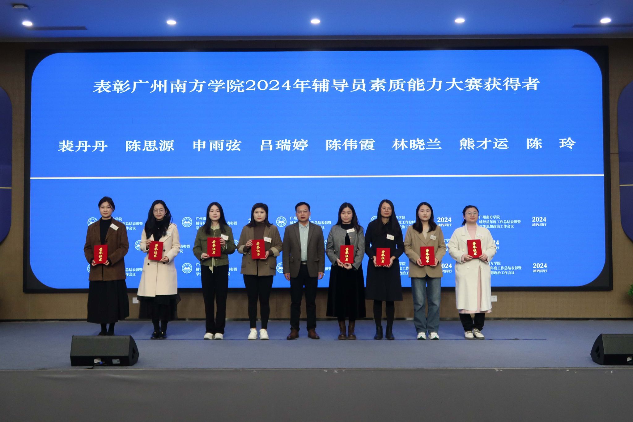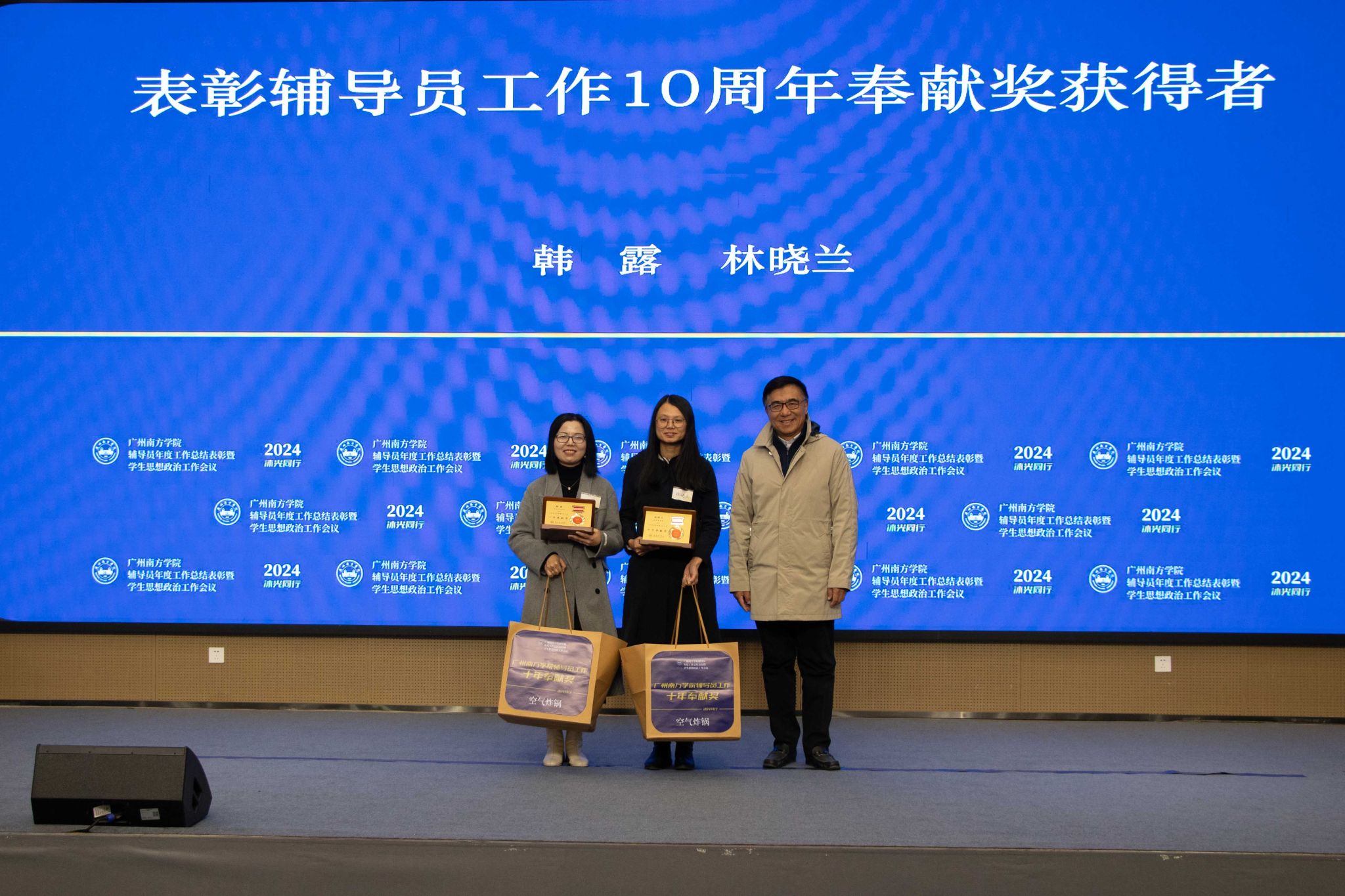 会上举行了隆重的表彰仪式。表彰辅导员工作10周年奉献奖获得者,2024年度教育部人文社会科学研究专项任务项目(高校辅导员研究)立项负责人,以及省级、校级个人荣誉与研究成果获得者,表彰79人次、14项奖项。