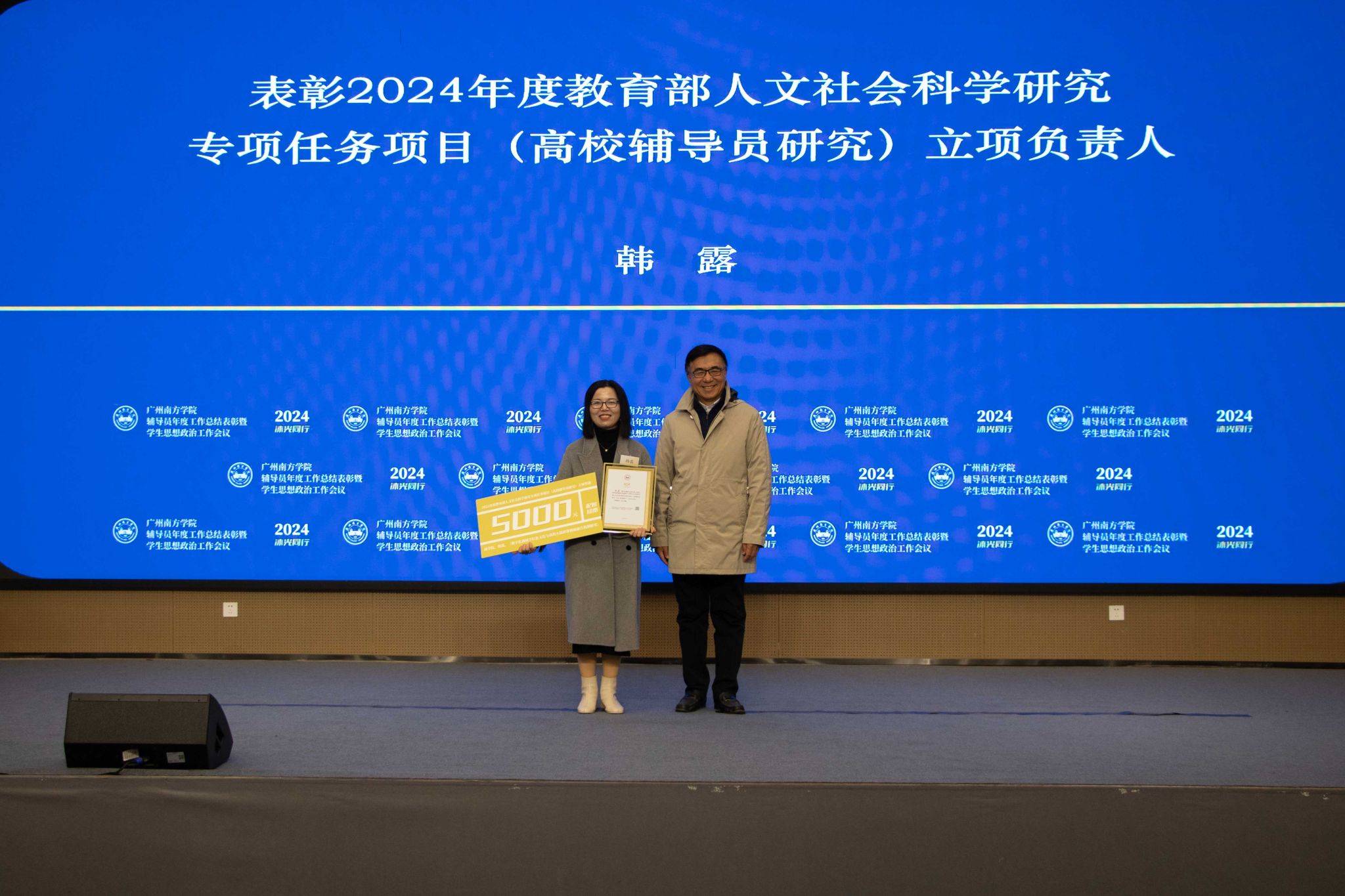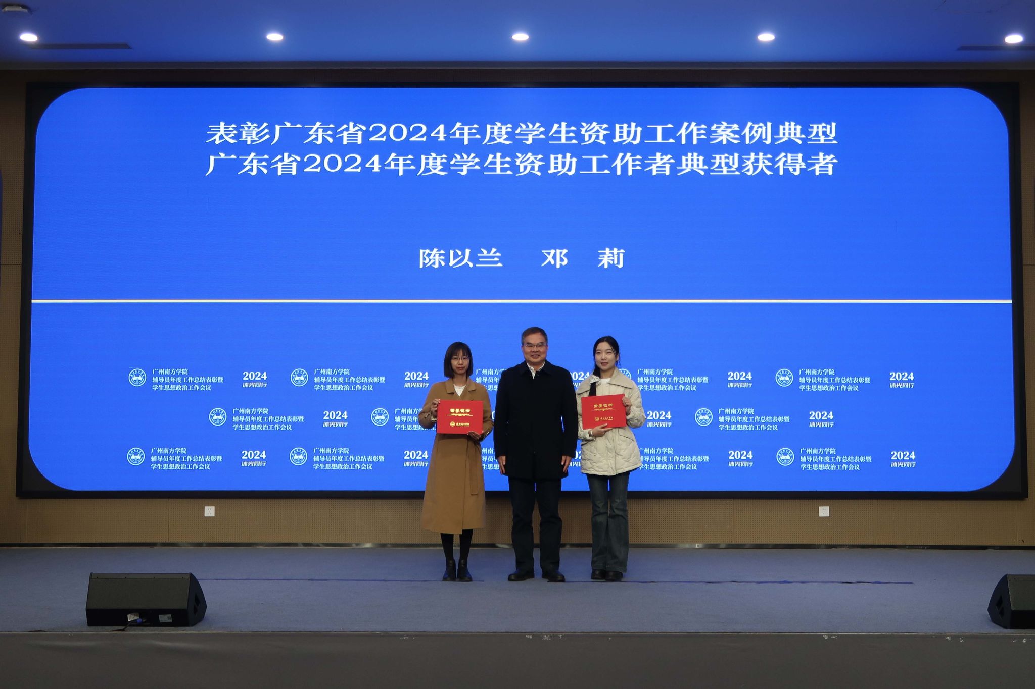 党委副书记、副校长植秀聪为广东省2024年度学生资助工作案例典型、广东省2024年度学生资助工作者典型获得者颁奖