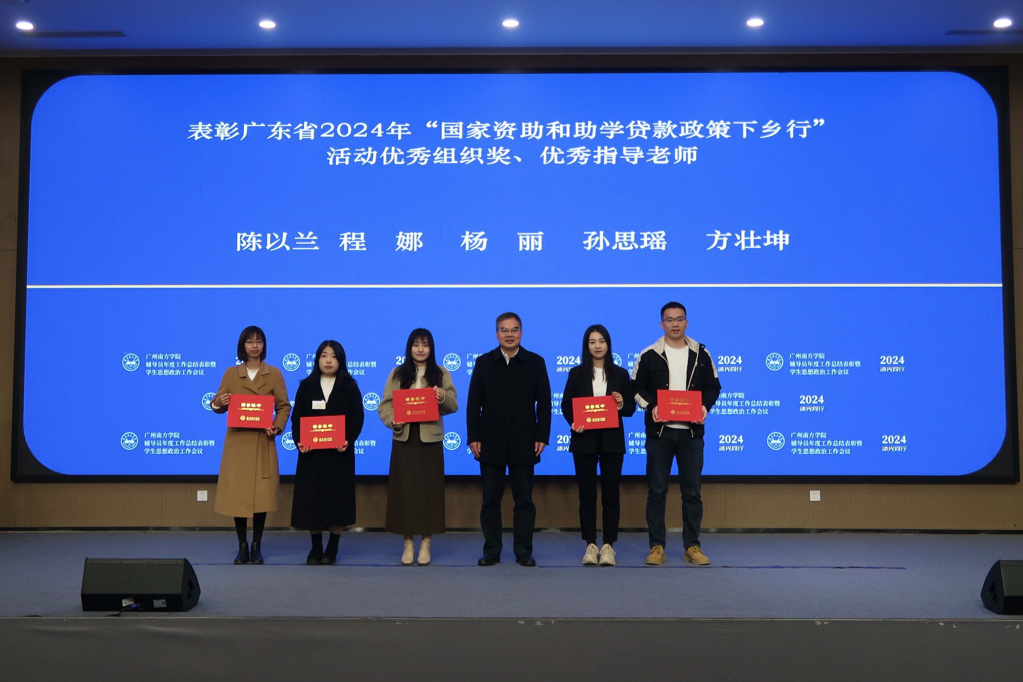 党委副书记、副校长植秀聪为广东省2024年“国家资助和助学贷款政策下乡行”活动优秀组织奖、优秀指导老师颁奖