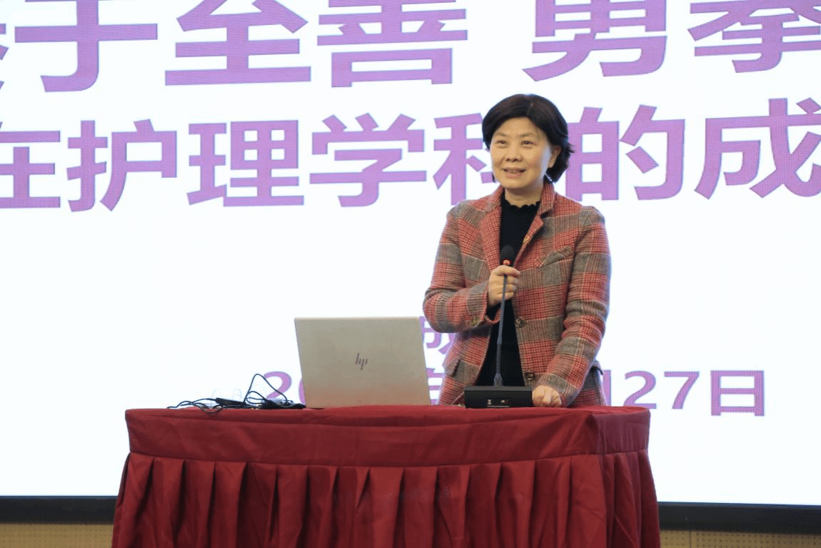 随后,成守珍教授分享了自己在护理学科的成长之路,深刻阐释了科学家精神。成守珍教授从19岁便踏上护理工作岗位,选择到呼吸与危重症病房工作,在充满挑战的专业路上,真切感受到生命的脆弱与坚强。1998年,她和医疗专家团队共同创立医院内科ICU,成功开展了首例严重肺泡蛋白沉着症双肺泡灌洗;2014年,她参加国家医疗队前往西藏帮扶支援。成守珍教授始终坚守“生命至上”的初心和使命,坚持“把平凡的工作做的不平凡”的信念,秉持“心中有目标、手上有绝活、脚下有力量”的工作理念,一路砥砺前行。