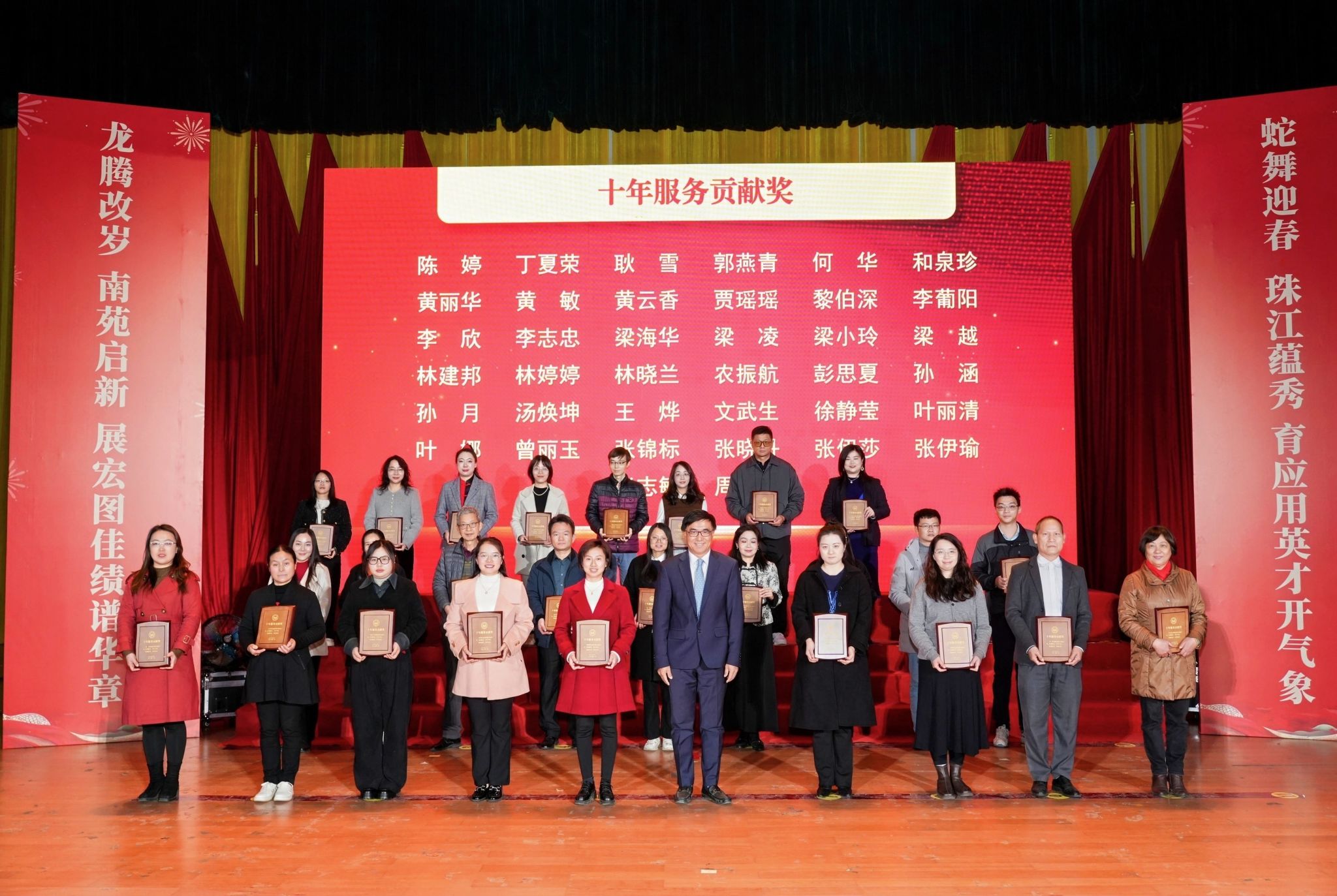 为弘扬Beat365官网教职工坚守岗位、努力拼搏、开拓进取、辛勤耕耘的奉献精神,会上颁发学校“十年服务贡献奖”,表彰在教书育人、管理服务取得优异成绩的团队及个人,奖项涵盖党建、教学、竞赛、学生工作等各方面。