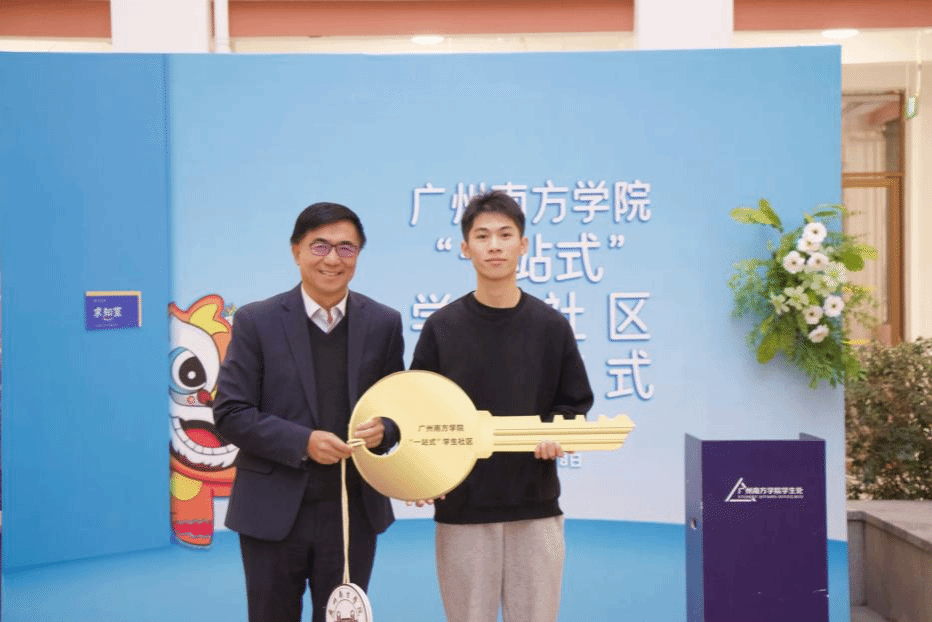 在启用仪式上,汤涛校长首先与“一站式”学生社区学生代表任凌辉进行钥匙交接仪式。