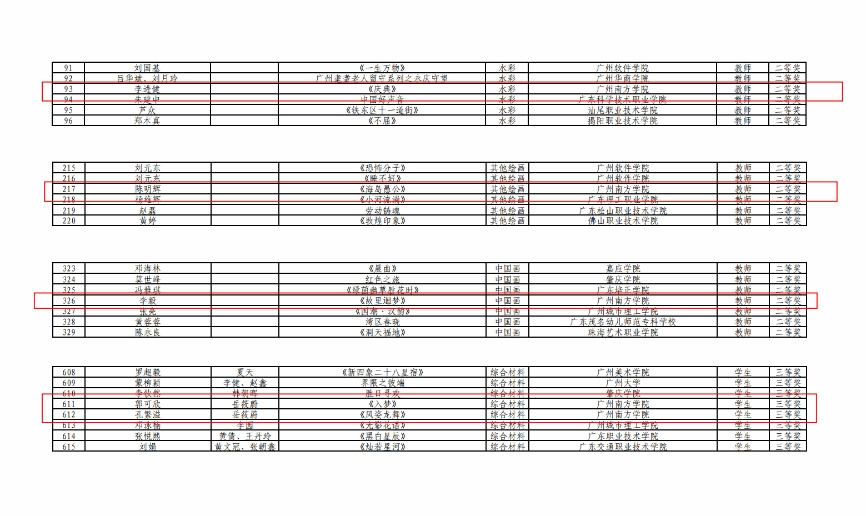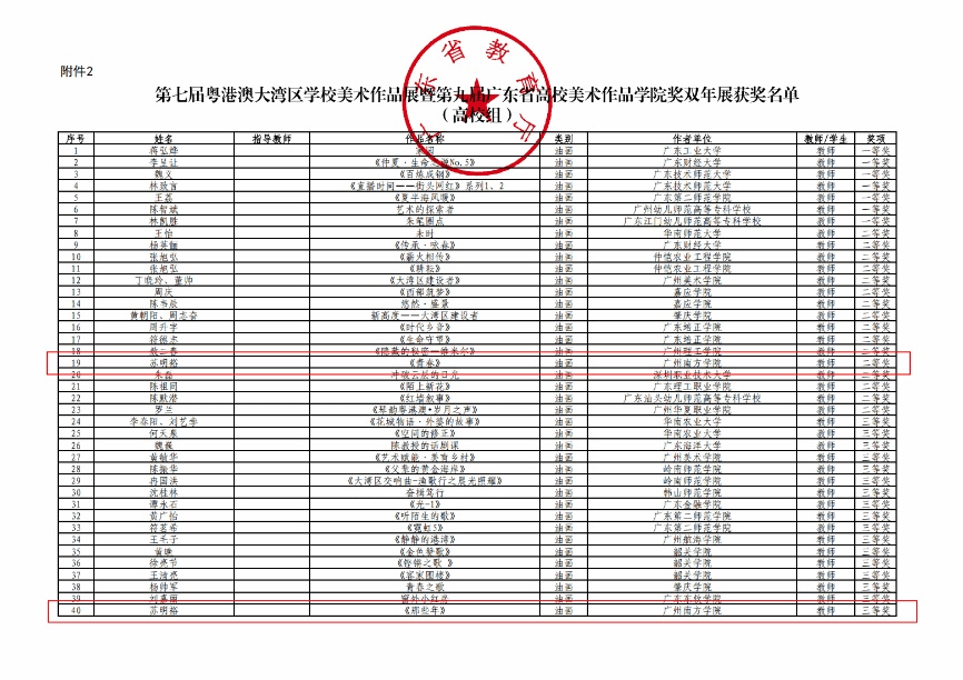 (第七届粤港澳大湾区学校美术作品展暨第九届广东省高校美术作品学院奖双年展获奖名单截图)
