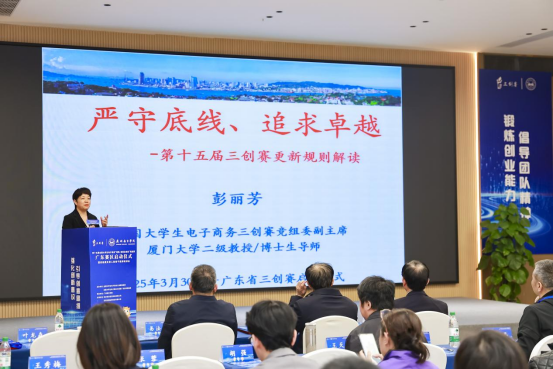 彭丽芳教授作题为《严守底线、追求卓越》的专题讲座,详细解析赛事流程、规则创新及省级赛指标分配机制,并结合往届违规案例,强调“严守92条规则”的重要性。