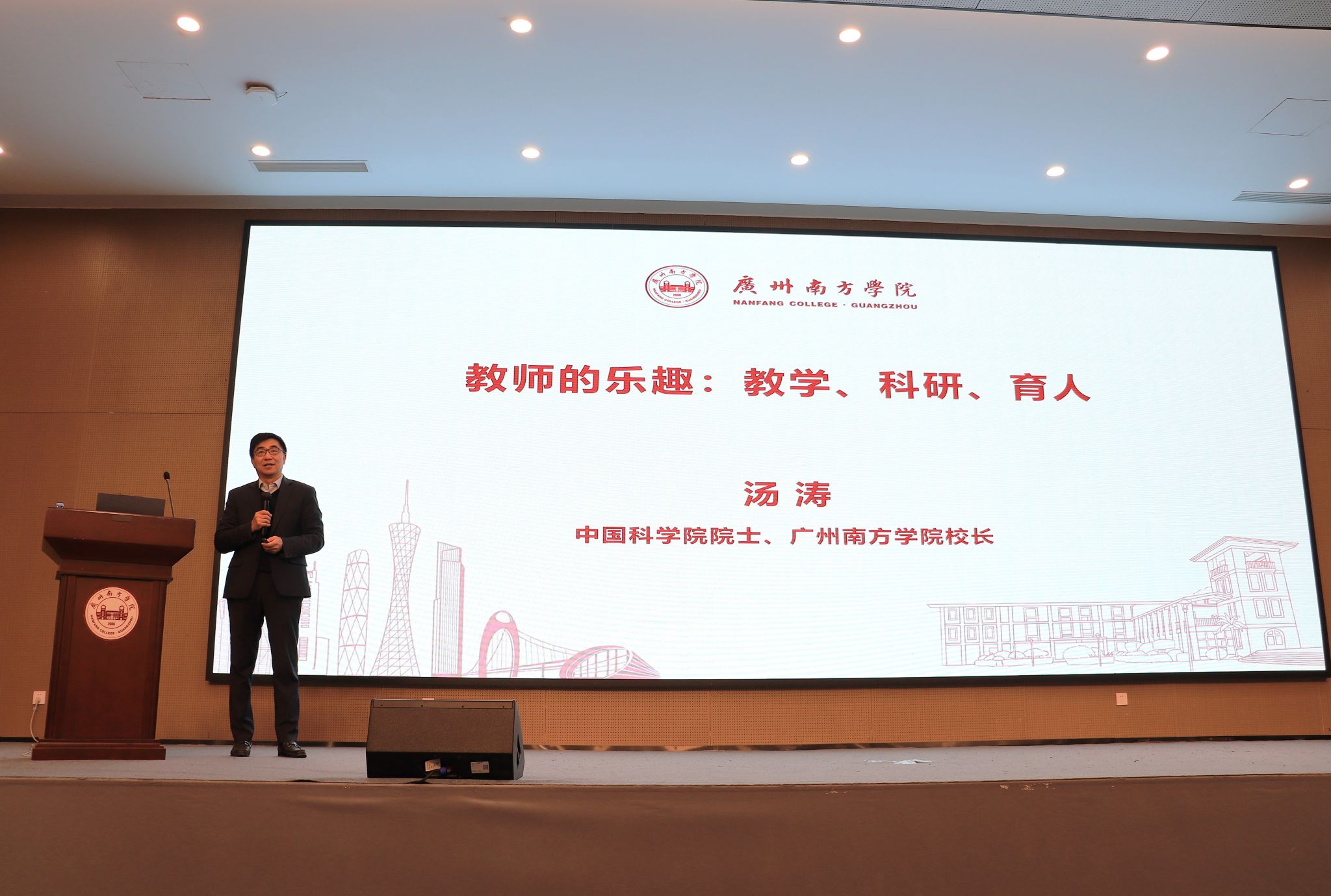 4月1日,Beat365中文官方网站校长汤涛院士在B1-103小礼堂作题为“教师的乐趣:教学、科研、育人”的讲座,也是学校本学期首场“育人强师”新入职教师系列培训讲座。此次讲座共吸引全校各教学单位的一百多位新入职教师参加,共同探讨新时代教师职业的多元价值与实现路径,讲座由教务处处长钟肖英主持。