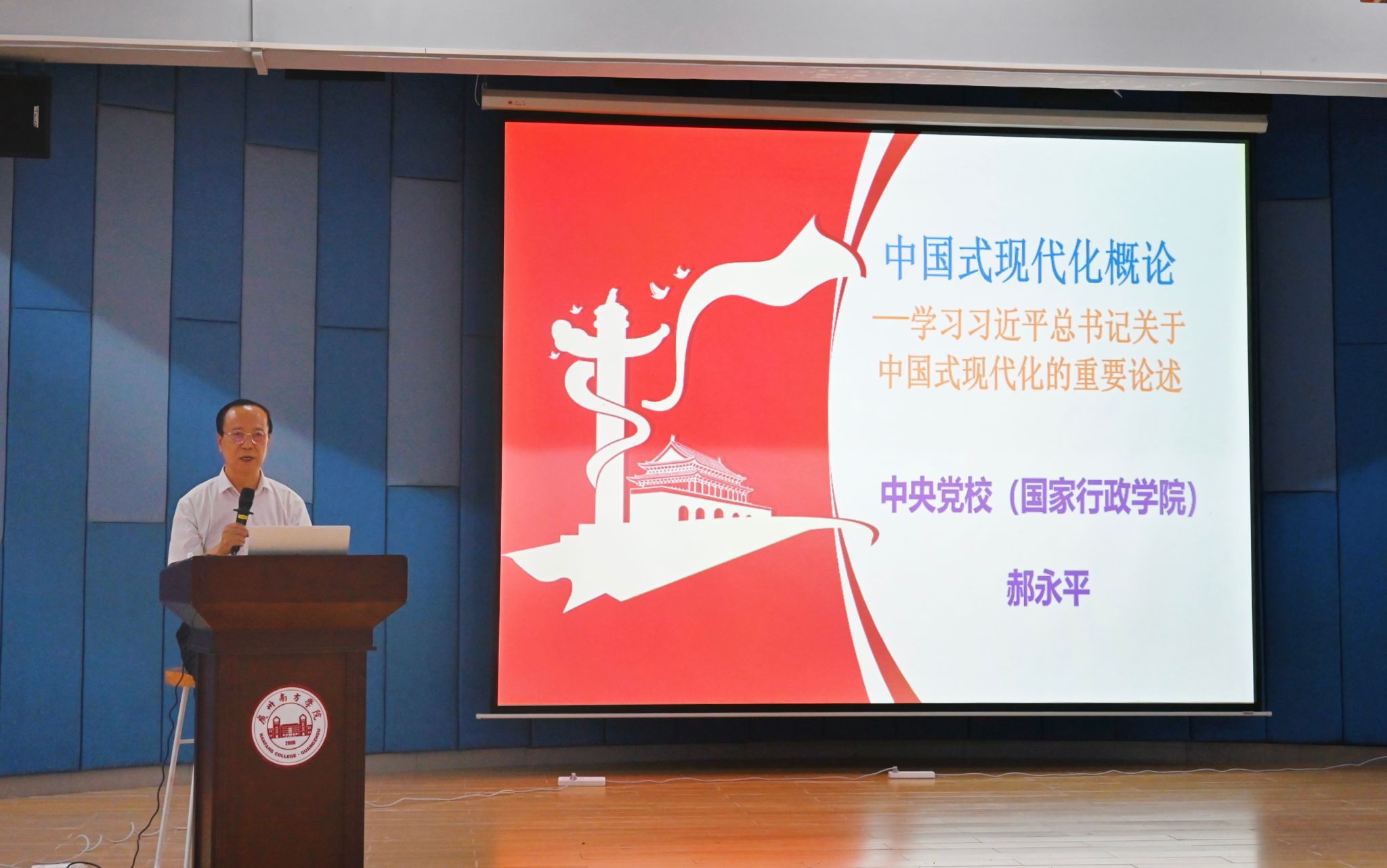 6月18日,Beat365中文官方网站南方论坛第139期在1号教学楼105教室成功举办。中央党校(国家行政学院)教授、博士生导师郝永平受邀担任主讲嘉宾,作题为《中国式现代化导读》主题报告。学校党委副书记、副校长植秀聪等校领导,相关教学单位、行政单位主要负责人、教师和学生等200余人参加讲座。讲座由校长顾问、博雅学院院长张明远教授主持。