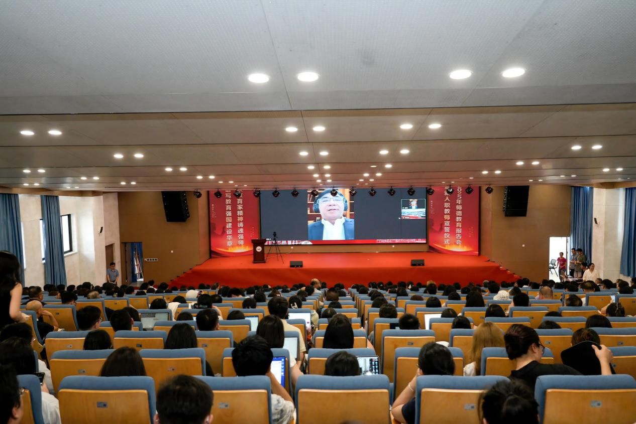校长汤涛院士首先向全体教师致以节日问候,并对新入职教师表示热烈欢迎。汤涛校长表示,近年来,在全体教职员工的共同努力下,学校教育教学改革持续深化,学科建设水平稳步提升,科研创新能级不断突破,校园文化建设亮点纷呈,在人才培养、科学研究、社会服务、文化传承与创新等方面取得了丰硕的成果。他从自身数十载教书育人的实践经历出发,谈到教育工作者要始终将学生置于心中最重要的位置,坚持以爱心、耐心和责任心对待每一位学子,致力于为他们的成长成才保驾护航。他强调,希望全体教职员工聚焦学校建设发展,提升教书育人本领,共同谱写学校高质量发展新篇章,为教育强国建设和服务区域经济社会发展培养高素质应用型人才。