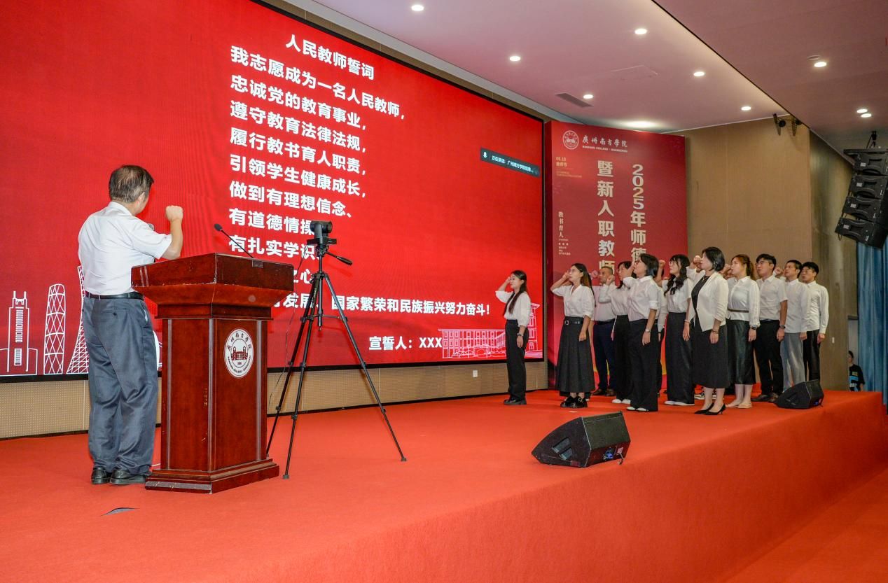 9月10日下午,学校在教研楼1号报告厅举办2025年师德教育报告会暨新入职教师宣誓仪式。校长汤涛、党委书记李建超等校领导,各教学单位负责人、相关职能部门负责人及新入职教师等五百余人参会,会议由人事干部处处长李兴强主持。