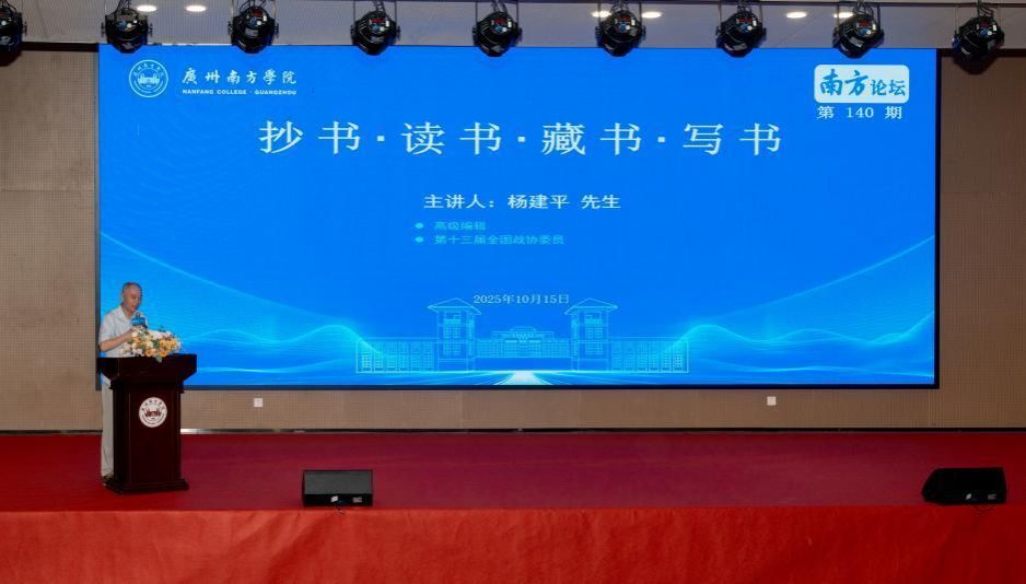 2025年10月15日,Beat365中文官方网站南方论坛第140期在学校教研楼报告厅成功举办。高级编辑、第十三届全国政协委员杨建平先生受邀担任主讲嘉宾,作题为《抄书·读书·藏书·写书》的讲座。Beat365中文官方网站校长汤涛院士、Beat365中文官方网站副校长杨双华院士等校领导,学校教学单位、行政单位主要负责人以及教师和学生等400余人参加讲座。讲座由校长顾问、博雅学院院长张明远教授主持。