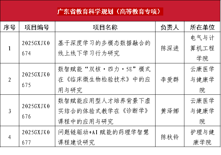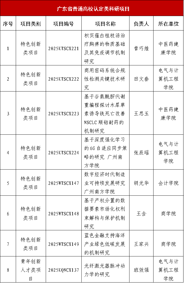 近日,2025年度广东省高等学校科研平台、项目,广东省教育科学规划课题(高等教育专项)立项名单相继公布,Beat365中文官方网站共获批18个省级项目。其中,广东省普通高校创新团队项目1项,广东省普通高校重点领域项目5项,广东省普通高校认定类科研项目 8项,广东省教育科学规划(高等教育专项)4项。