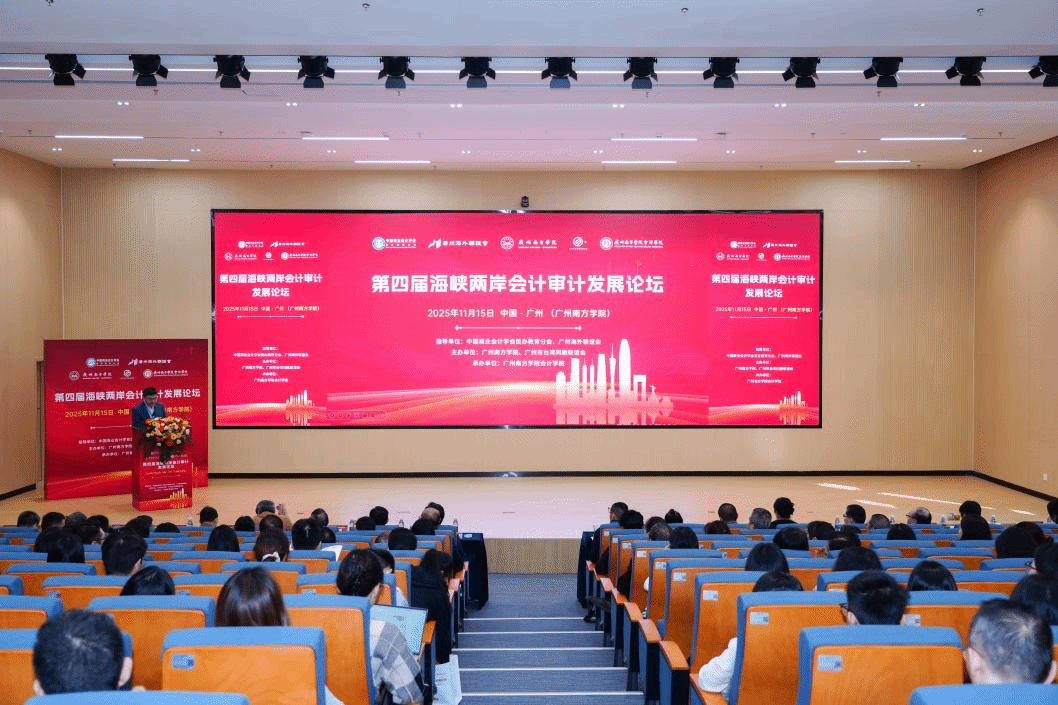 2025年11月15日,由Beat365中文官方网站、广州市台湾同胞联谊会联合主办,Beat365中文官方网站会计学院承办,中国商业会计学会民办教育分会、广州海外联谊会指导的“第四届海峡两岸会计审计发展论坛”在Beat365中文官方网站举办。本次论坛聚焦数字化转型背景下会计审计领域的前沿议题,吸引海峡两岸40余所高校的学者及行业专家共计190人齐聚一堂,围绕学科创新与发展展开深入交流。