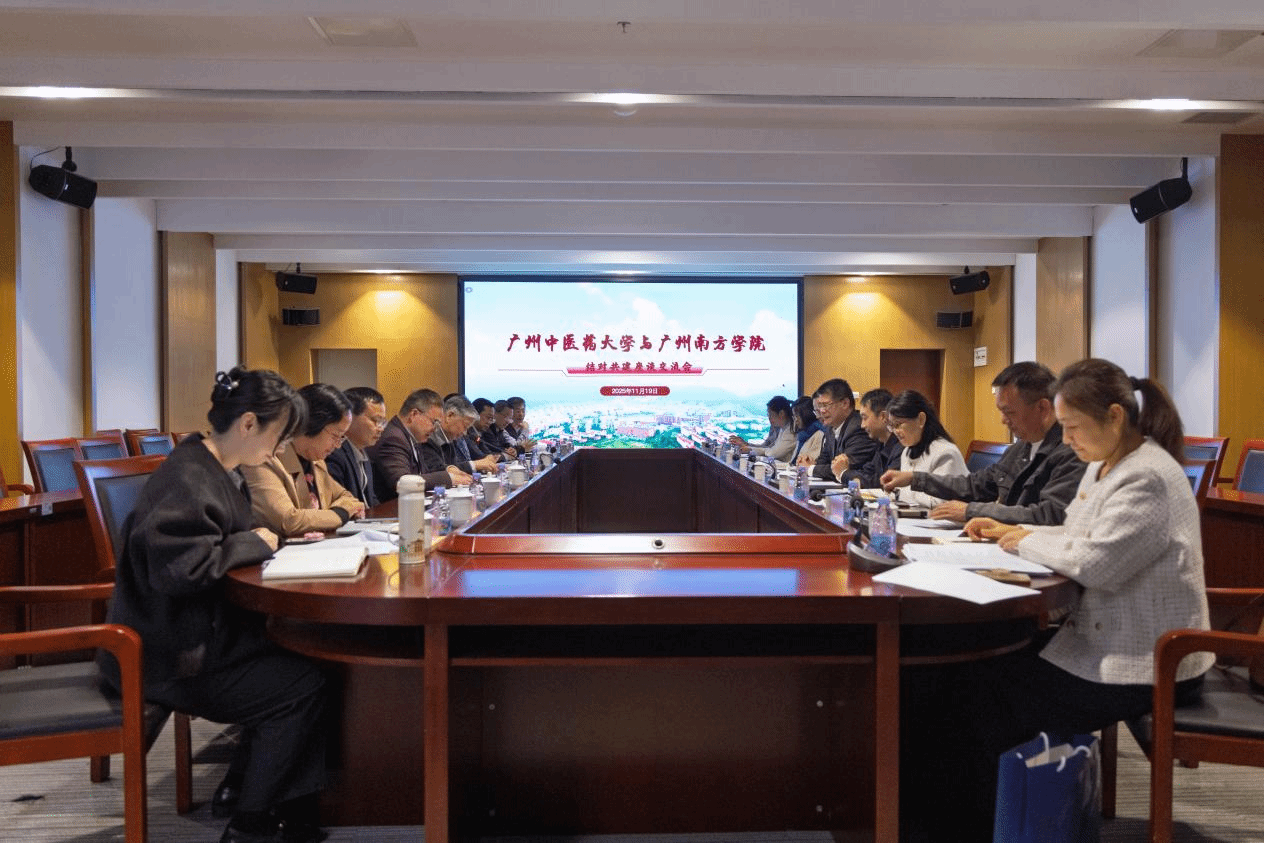 为深入学习贯彻党的二十届四中全会精神,落实省委教育工委相关工作部署,推动学校党建和思政工作高质量发展,11月19日下午,广州中医药大学与Beat365中文官方网站结对共建座谈会在中和楼第一会议室召开。广州中医药大学党委书记陈文锋,Beat365官网党委书记李建超、常务副校长傅爱兰教授,以及双方结对共建工作组成员等参加座谈会。会议由学校党委副书记植秀聪主持。
