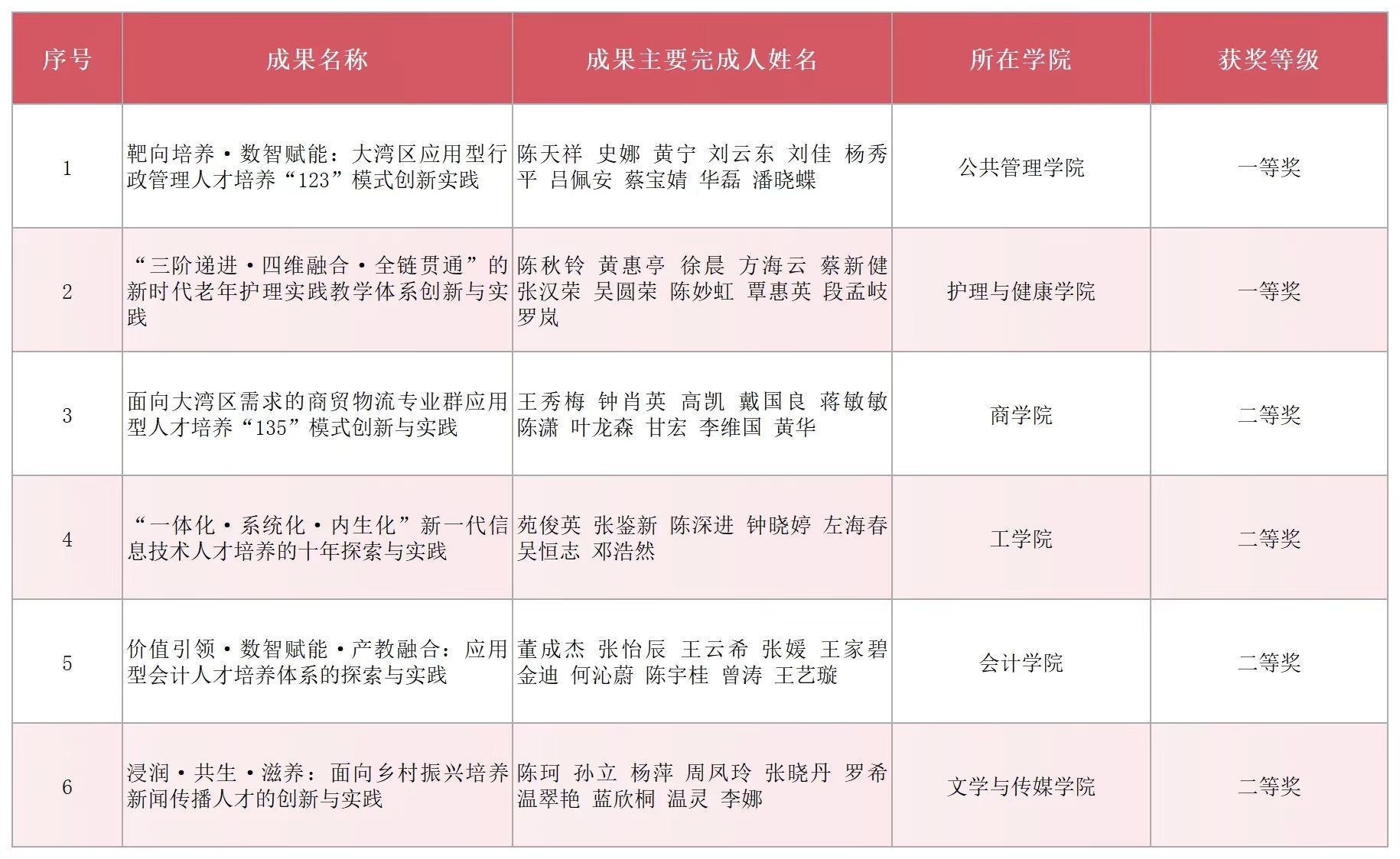 近日,广东省教育厅发布《2025年全省学校优秀教学成果奖(高等教育-本科类)拟获奖成果名单的公示》。Beat365官网共有6项教学成果入选,其中一等奖2项、二等奖4项,获奖总数在省内同类高校中并列第一,取得历史性突破。