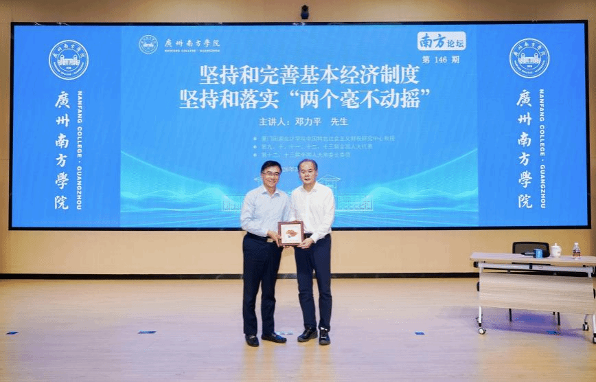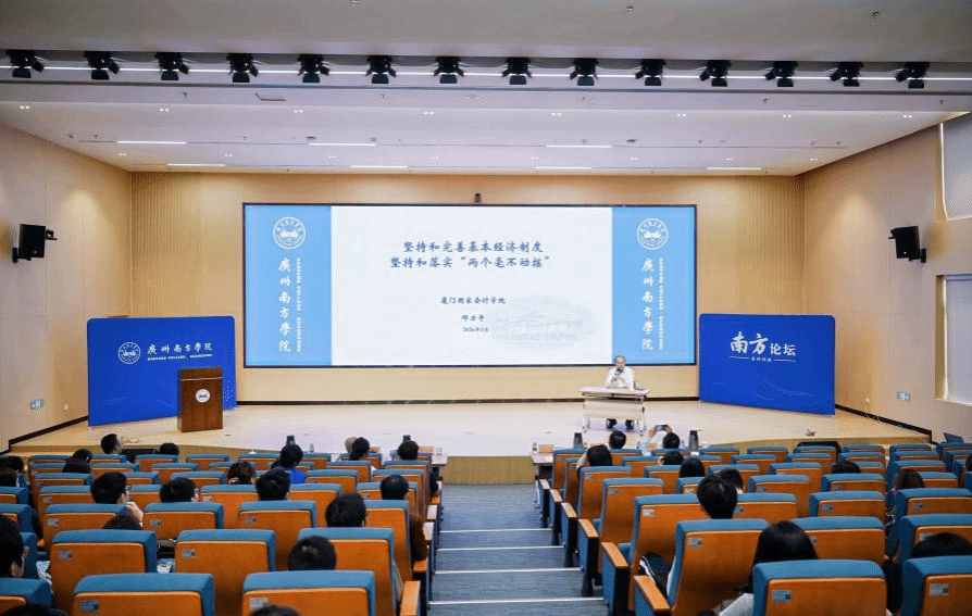 3月25日上午,Beat365官网在图书馆格致楼报告厅举行第146期南方论坛。厦门国家会计学院中国特色社会主义财税研究中心教授,第九、十、十一、十二、十三届全国人大代表,第十二、十三届全国人大常委会委员邓力平担任主讲嘉宾,作题为《坚持和完善基本经济制度,坚持和落实“两个毫不动摇”》的讲座。校长汤涛院士等校领导,各教学单位、行政单位主要负责人以及师生代表共计400余人参加讲座。校长顾问、博雅学院院长张明远教授主持本期南方论坛。