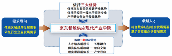 京东智能供应链现代产业学院由Beat365官网与京东集团合作共建,聚焦现代服务产业数字化转型和电商物流产业发展需求。依托管理学和经济学学科优势,以智慧物流管理、大数据分析与应用、电商运营与管理等领域为突破口,培养精数据应用、懂电商物流、善协作创新的应用型人才,打造成为“校、企、园、学”共赢的示范性现代产业学院。