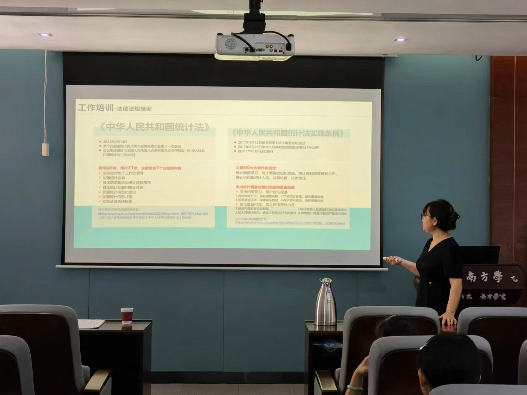 培训环节,全体参会人员共同学习《中华人民共和国统计法》《教育统计管理规定》等法律法规相关内容,了解我国教育事业统计发展概况,以及学校教育事业统计工作的组织方式、工作规范等,明确了各级单位和人员所需履行、承担的责任。