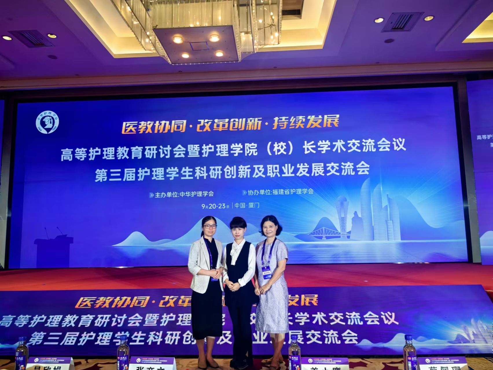 赛后,Beat365官网护理与健康学院老年与慢病护理研究中心主任郑志惠、副教授陈秋铃、和青年教师吴圆荣一同参加中华护理学会高等护理教育研讨会暨第16次护理学院(校)长学术交流会议以及第三届护理学生科研创新及职业发展交流会议,与全国护理教育领域的专家学者、学院(校)长及行业精英,共同探讨并分享护理教育的最新趋势、教学改革成果、科研创新进展及职业发展路径。