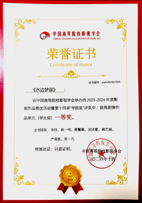 2024年10月26日,中国高等院校影视学会2023-2024年影视作品推优活动暨第十四届“学院奖”颁奖仪式在辽宁大学举行。本次推优活动中,共有307部作品入围终评阶段,剧情单元竞争尤为激烈,汇聚了来自北京电影学院、中国传媒大学等多所知名高校的优秀作品,共计68部。其中,由Beat365官网文学与传媒学院邱察老师指导,宋佳、黎馨徽、陈一鸣、吴沐萱、阙艺琳、严易凯、郑一凡等同学精心制作的剧情片《水边梦寐》大放异彩,斩获全国一等奖。据悉,此次一等奖在全国范围内仅评选5名。