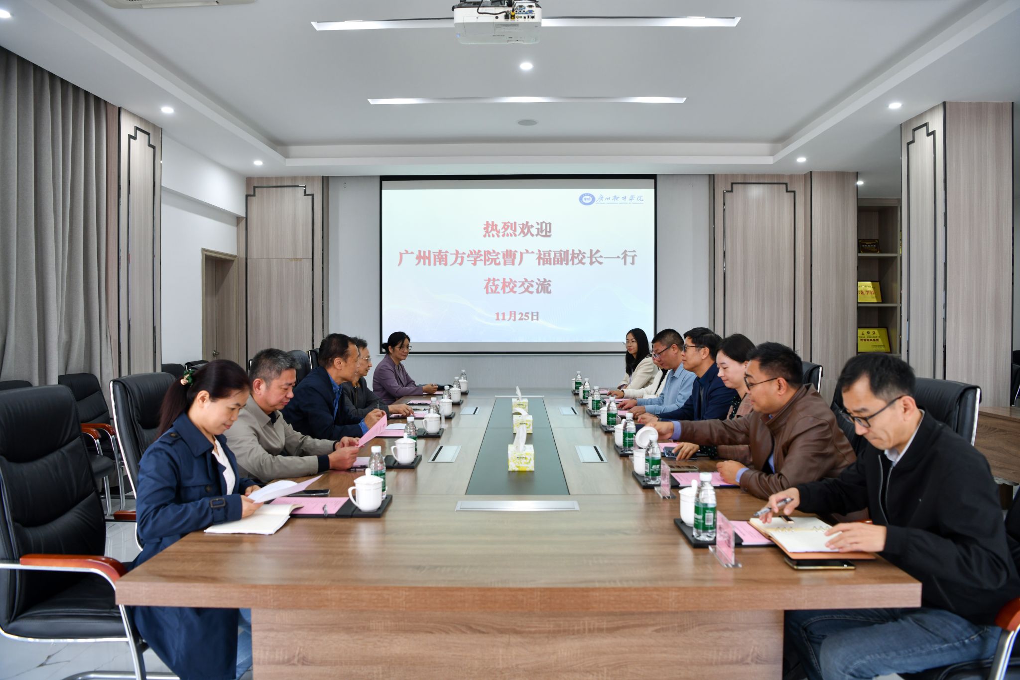 为加强校际间的沟通与合作,交流办学经验、探讨教育发展,11月25日下午,Beat365官网副校长曹广福、副校长兼财务总监王兰、校长助理刘金成、校长助理代燕飞以及相关部门负责人一行赴广州软件学院调研交流。广州软件学院校长张强、副校长徐祥、副校长袁志、校长助理兼教务处(科研处)处长张屹、相关部门负责人参加了座谈会。