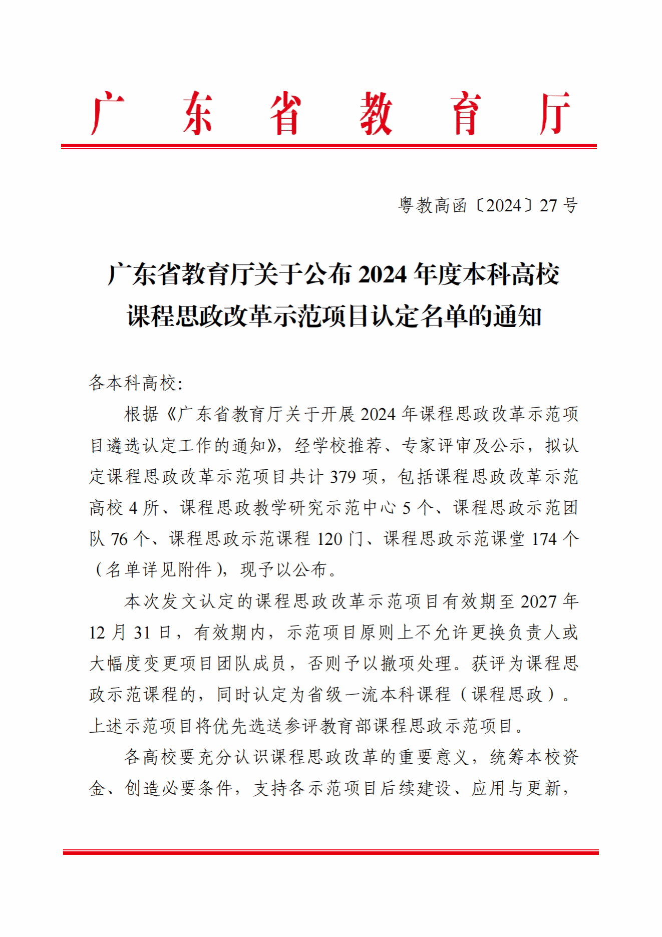 广东省本科高校2024年课程思政改革示范项目认定名单 | |||