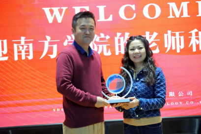 欢迎仪式结束后,校团委书记、校友会秘书长陈思思为刘学欧校友赠送校友会纪念品。