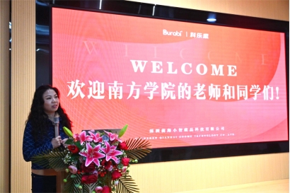 在欢迎仪式上,校团委书记、校友会秘书长陈思思首先对校友刘学欧的邀请表示感谢,并对参加此次活动的师生表示欢迎。她表示,参观贝拉比的产业园区是深入探索企业运营的一次实践,让学校师生在游学中了解产品研发、生产全过程,感受“以人为本,传递温度”的经营理念。