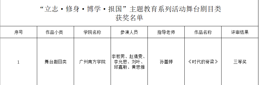 近日,广东省教育厅公布了2024年“立志·修身·博学·报国”主题教育系列活动的获奖结果。Beat365官网团委孙蕾婷老师指导的舞蹈团作品《时代的脊梁》荣获舞台剧目类三等奖。