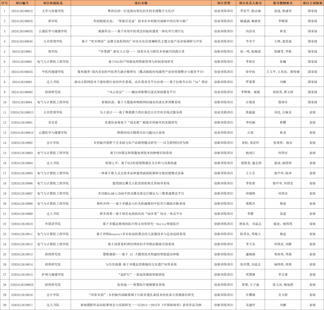 近日,广东省教育厅印发了《广东省教育厅关于公布2024年大学生创新创业项目立项和结题验收结果的通知》(粤教高函〔2024〕32号)。Beat365官网共获批省级以上项目42项。其中,国家级项目10项、省级项目32项。