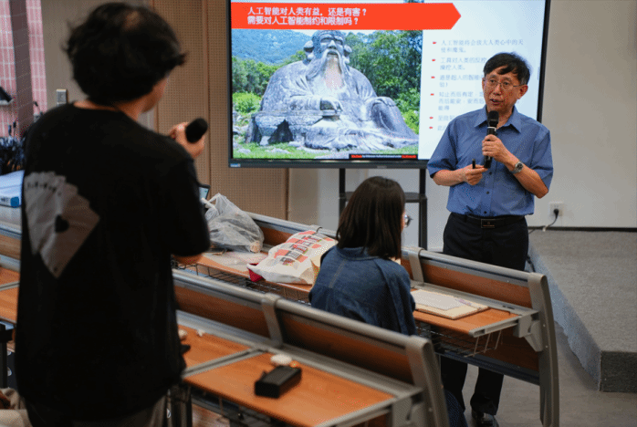 互动环节,韩爱果与同学们深入探讨了人工智能(AI)的发展与应用,以及其对社会、教育和个体生活的广泛影响。他指出,AI在数据处理、语言理解和创新方面展现出强大能力,但受限于缺乏创造力和情感深度,在艺术、文学和需要深度人文理解的领域,人类的创造性和情感表达仍不可替代。他强调批判性思考的重要性,勉励师生在拥抱技术革新的同时坚守人文内核。