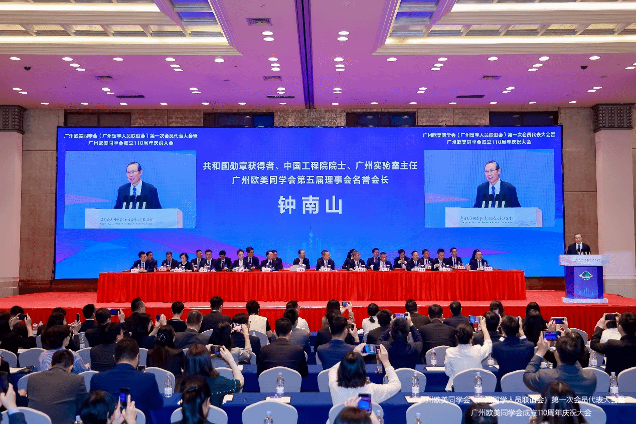 “共和国勋章”获得者、中国工程院院士、广州欧美同学会第五届理事会名誉会长钟南山,广州市委常委、统战部部长王焕清出席并致辞。大会宣读欧美同学会(中国留学人员联谊会)贺信。